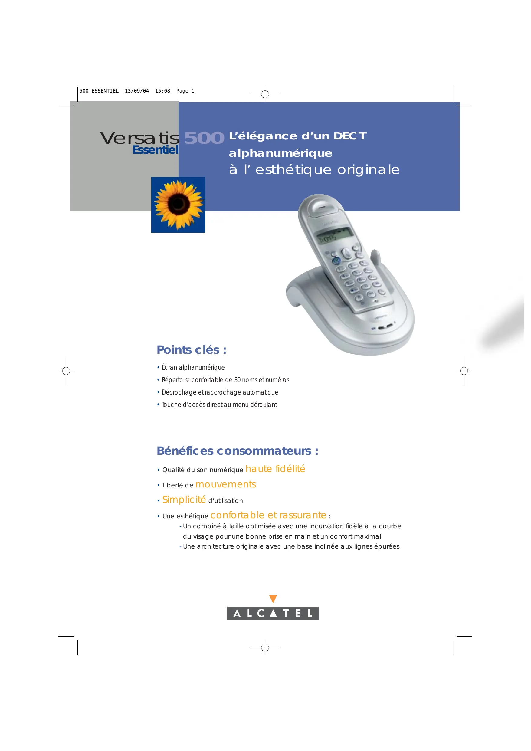 500 ESSENTIEL 13/09/04 15:08 Page 1 Versatis 500 Essentiel L’élégance d’un DECT alphanumérique à l’ esthétique originale Points clés :
