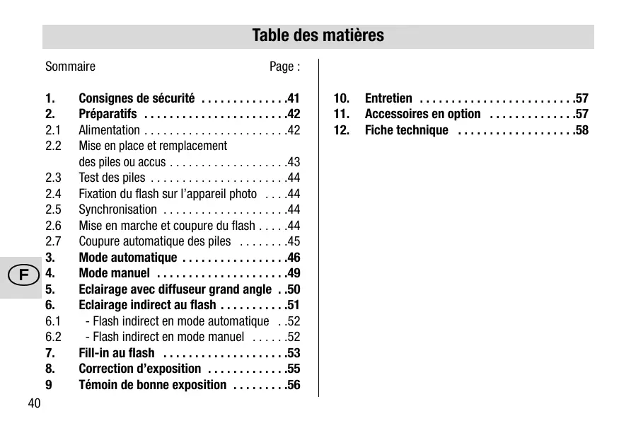 En cas de non-utilisation prolongée du flash, il est conseillé d’en sortir les piles ou accus.