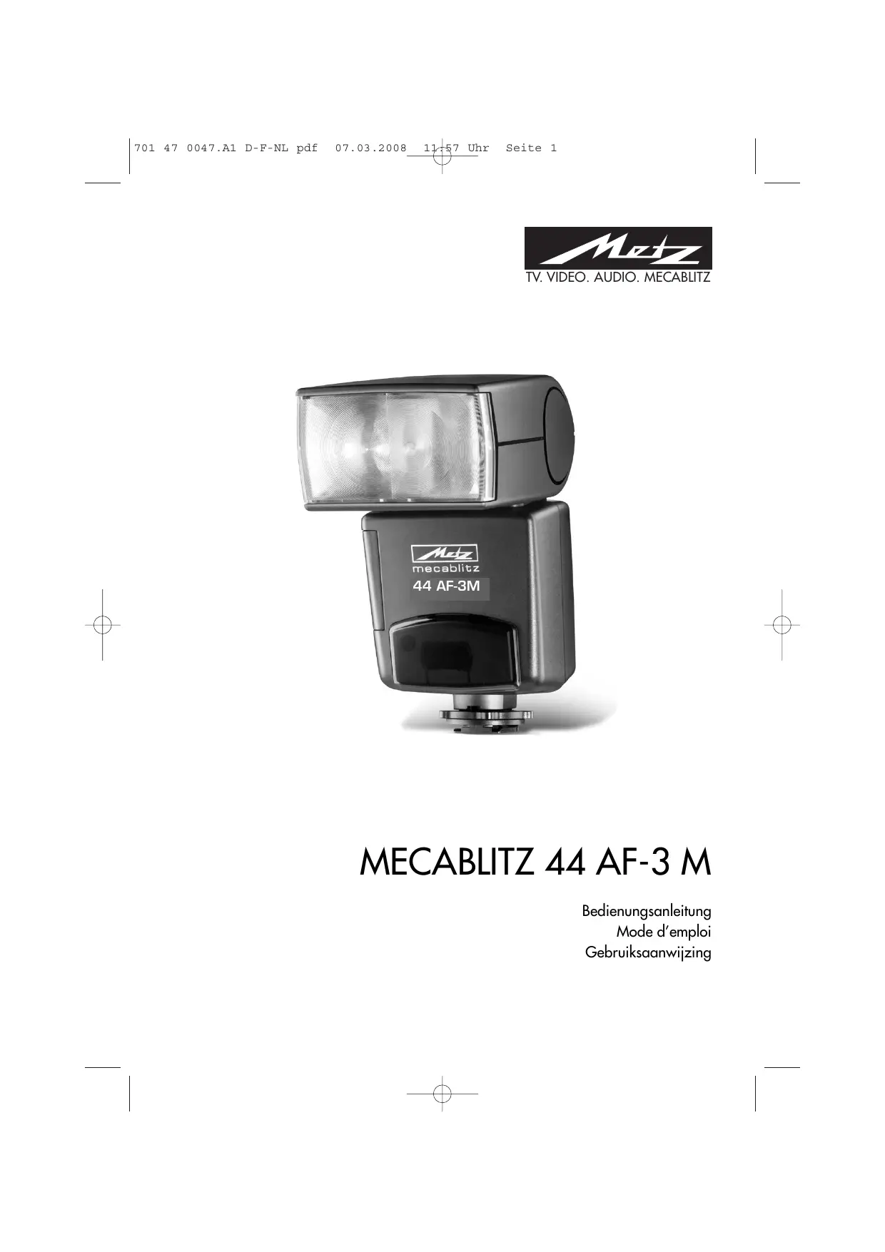 Téléchargez la notice de votre Flash électronique au format PDF gratuitement ! Retrouvez votre notice MECABLITZ 44 AF-3 M - METZ et reprennez votre appareil électronique en main. Sur cette page sont publiés tous les documents nécessaires à l'utilisation de votre appareil MECABLITZ 44 AF-3 M de la marque METZ.