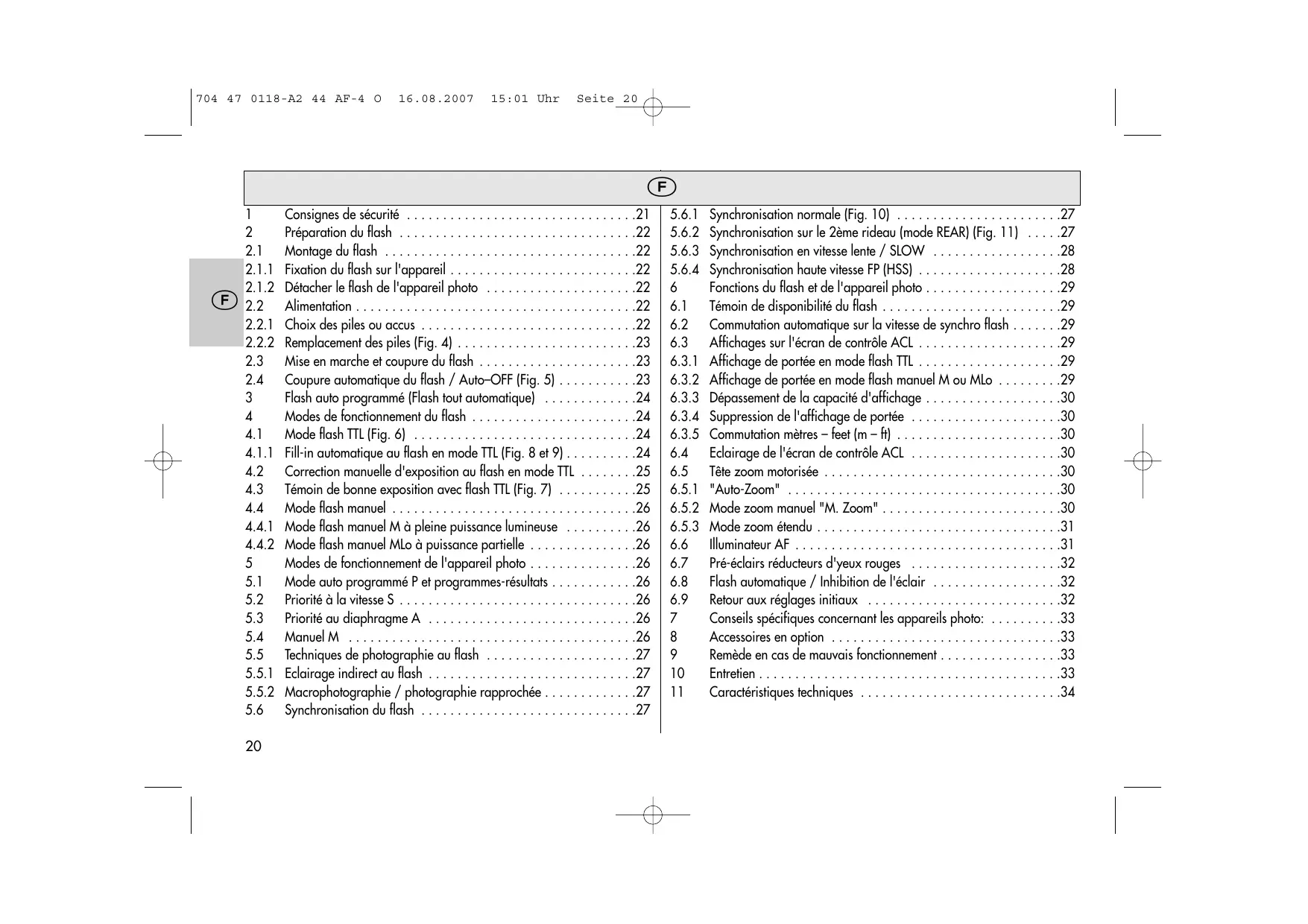- Coupure automatique du flash / Auto–OFF (Fig. 5) p. 23