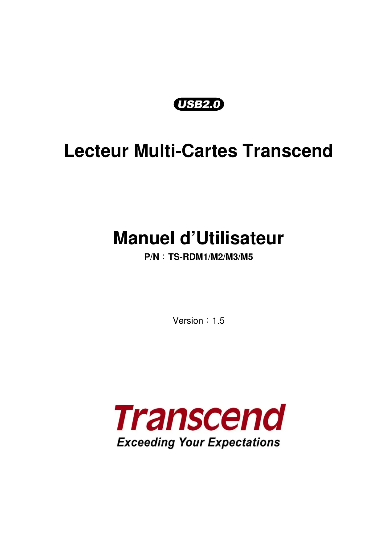 TS-RDM1 - Lecteur de cartes mémoire TRANSCEND - Notice d'utilisation et mode d'emploi gratuit