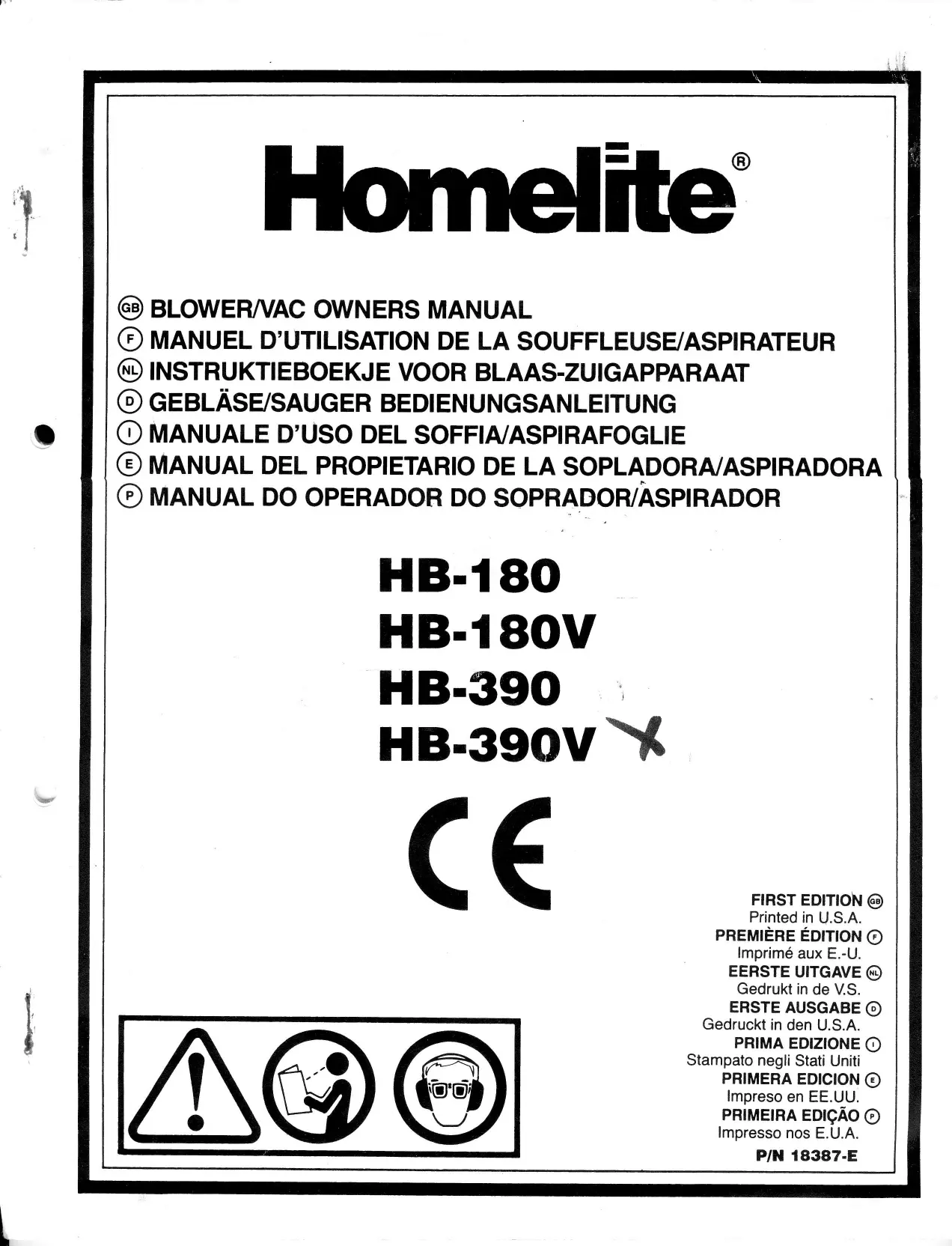 Retrouvez gratuitement la notice de l'appareil HB-390V HOMELITE au format PDF.