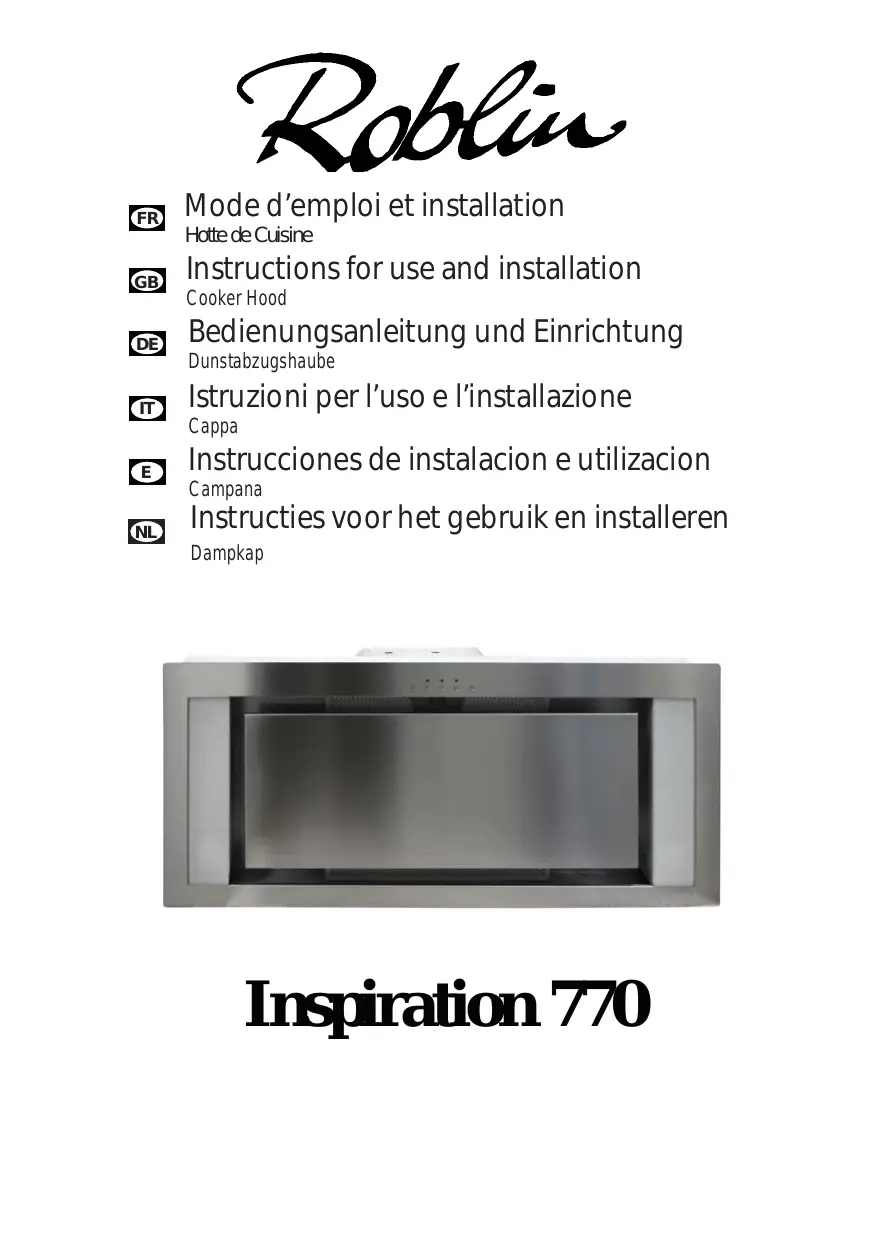 INSPIRATION 770 - Hotte de cuisine ROBLIN - Notice d'utilisation et mode d'emploi gratuit