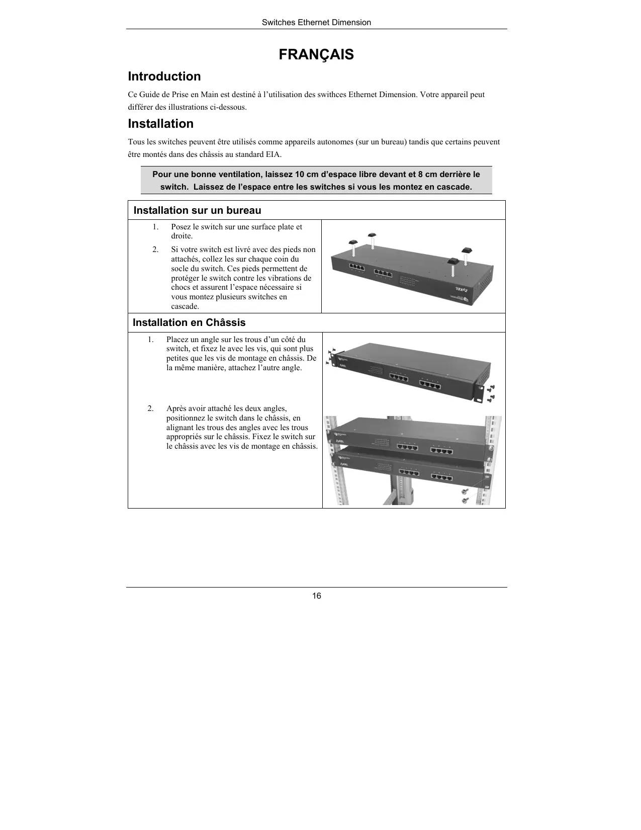 Ce Guide de Prise en Main est destiné à l’utilisation des swithces Ethernet Dimension. Votre appareil peut