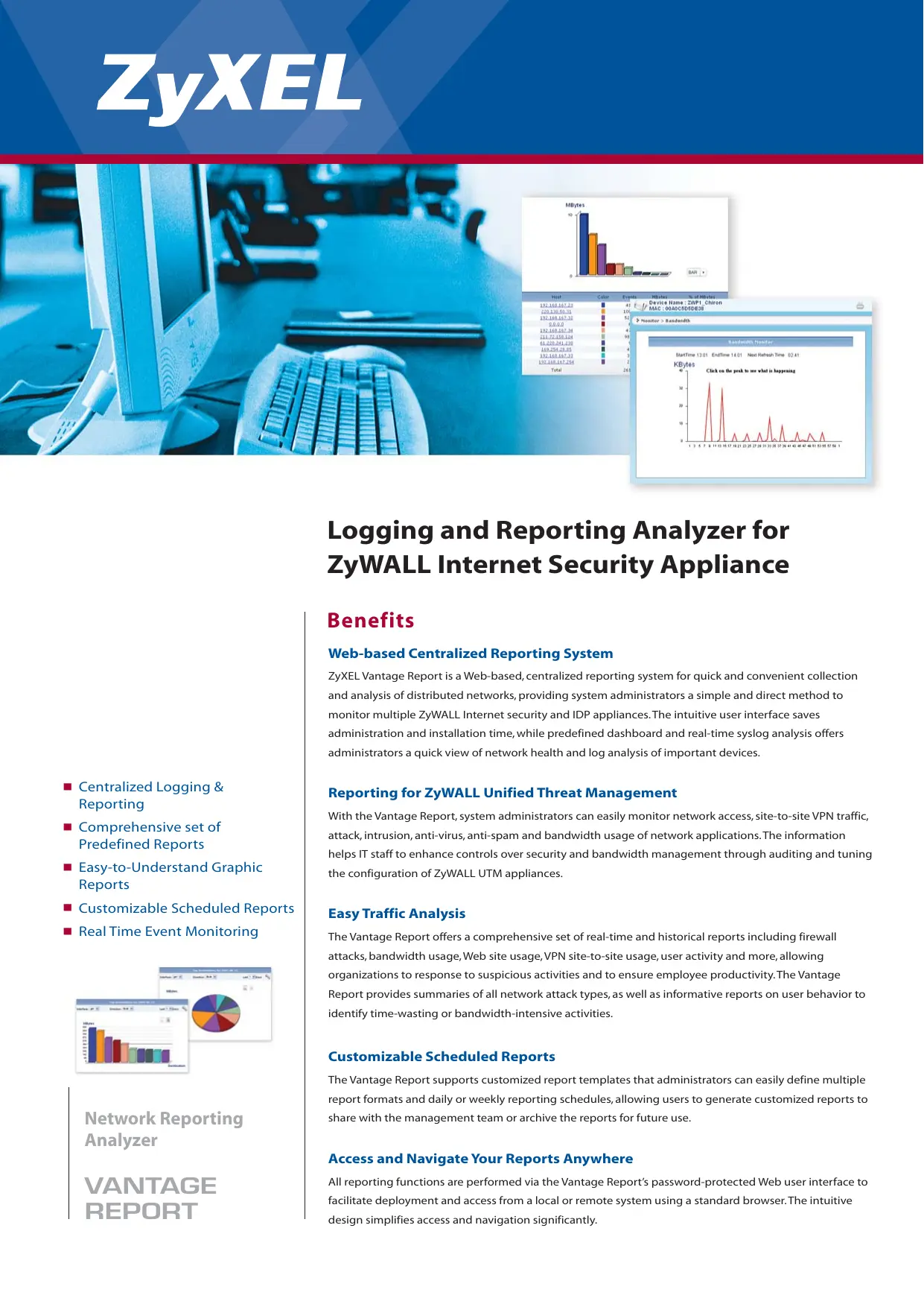 VANTAGE REPORT 2.3 - Routeur réseau ZYXEL - Notice d'utilisation et mode d'emploi gratuit