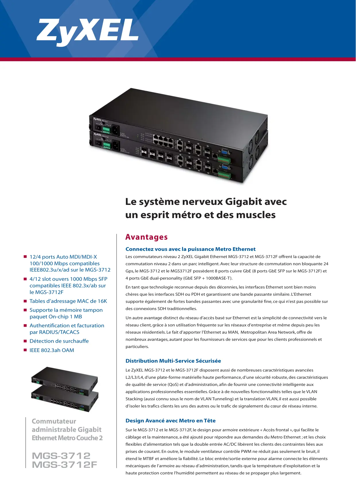Le système nerveux Gigabit avec un esprit métro et des muscles Avantages Connectez vous avec la puissance Metro Ethernet PORTS !UTO -$)-$) 8 100/1000 Mbps compatibles )%%%UXAD SUR LE -'3