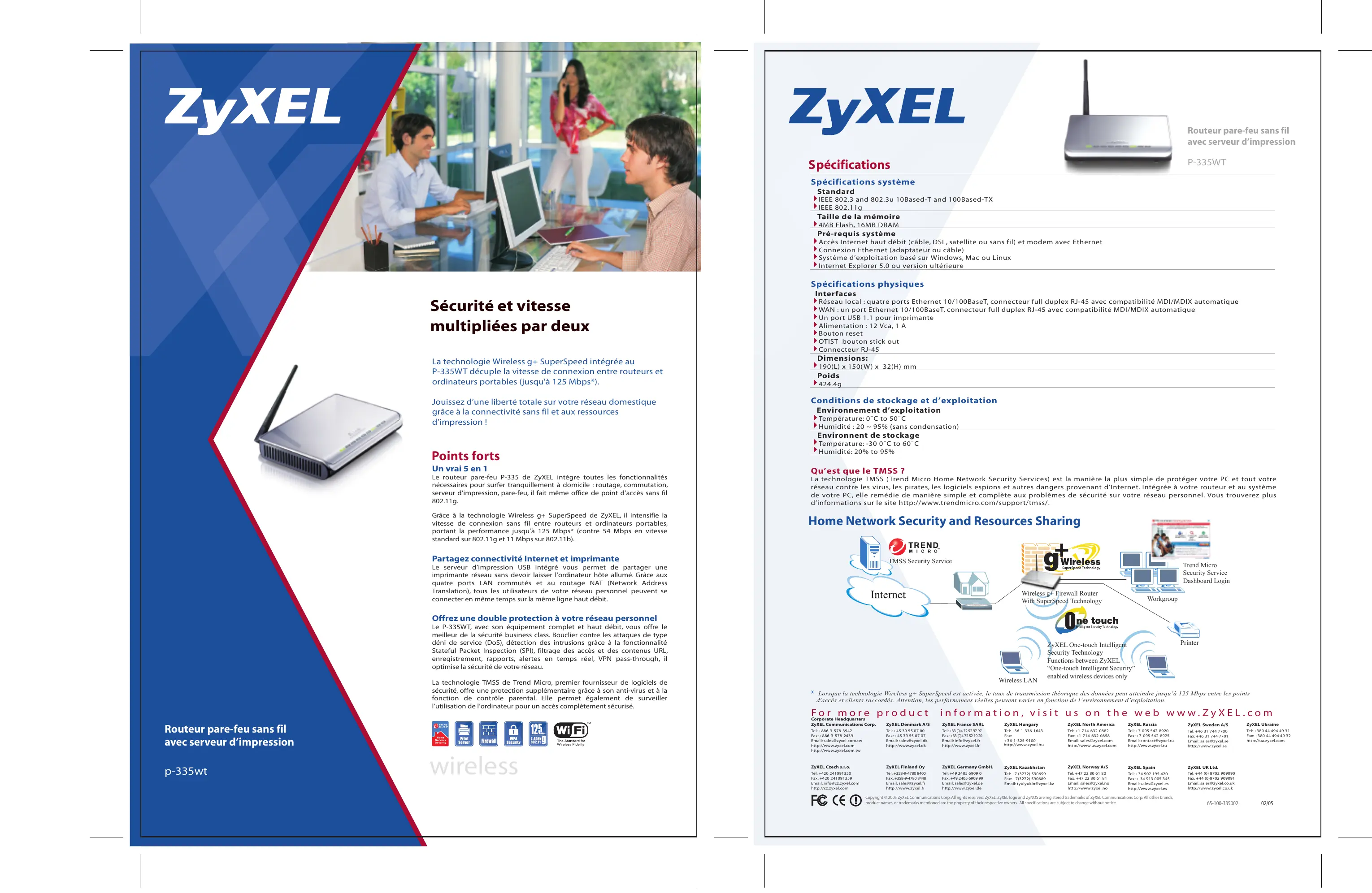 La technologie Wireless g+ SuperSpeed intégrée au P-335WT décuple la vitesse de connexion entre routeurs et ordinateurs portables (jusqu'à 125 Mbps”).
