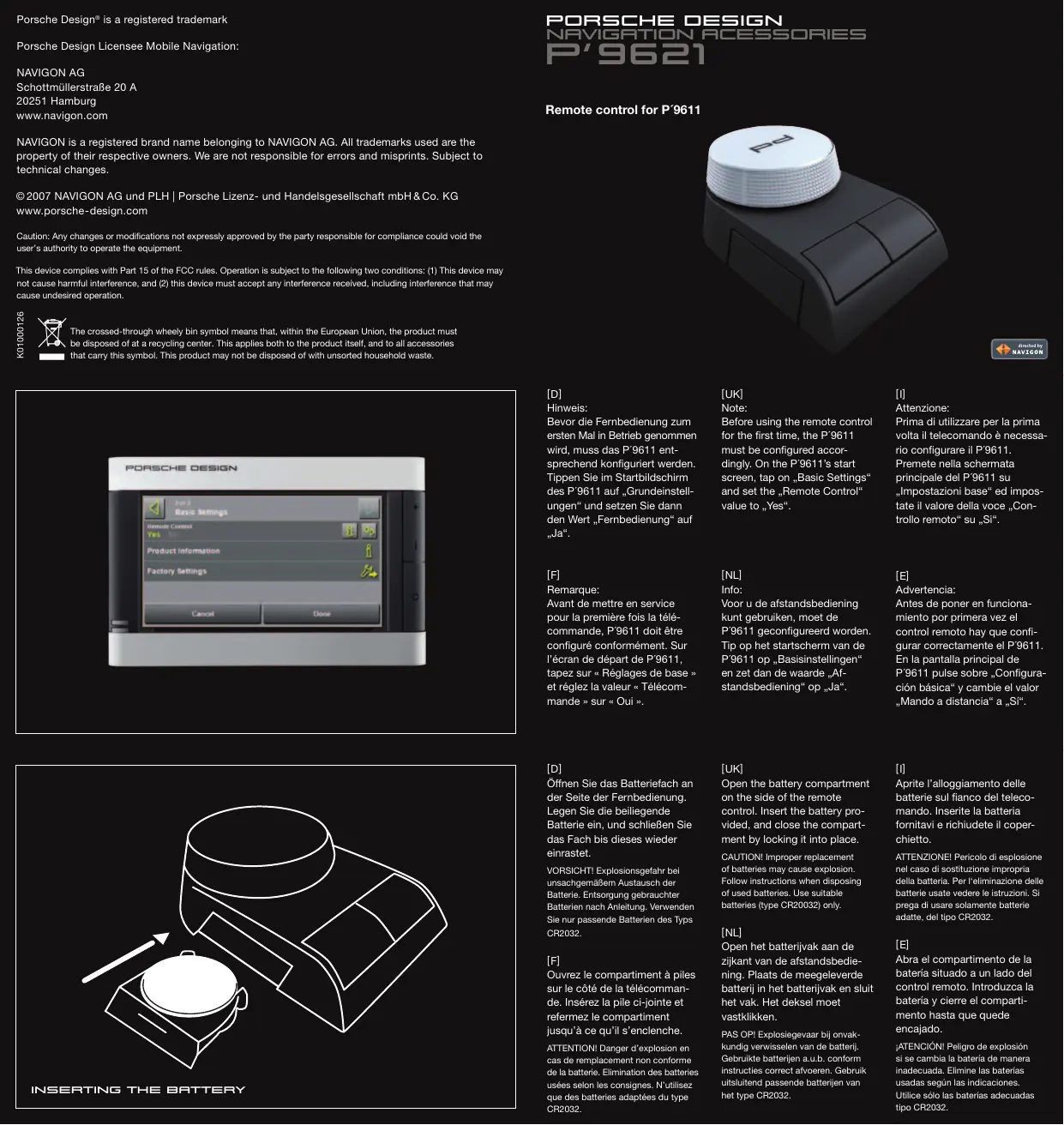 MODE D'EMPLOI PORSCHE DESIGN P 9621 NAVIGON