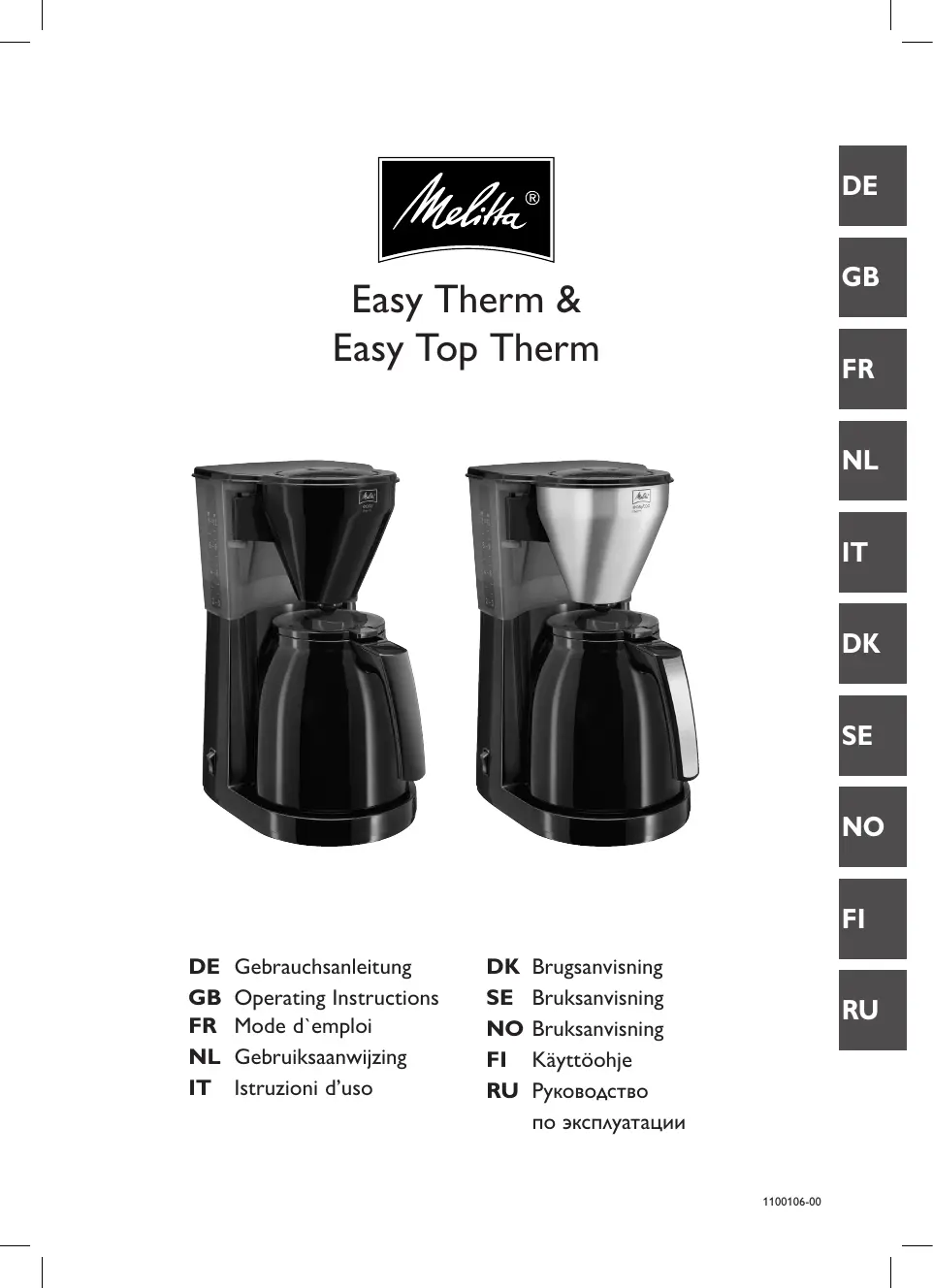 Retrouvez gratuitement la notice de l'appareil EASY TOP THERM MELITTA au format PDF.