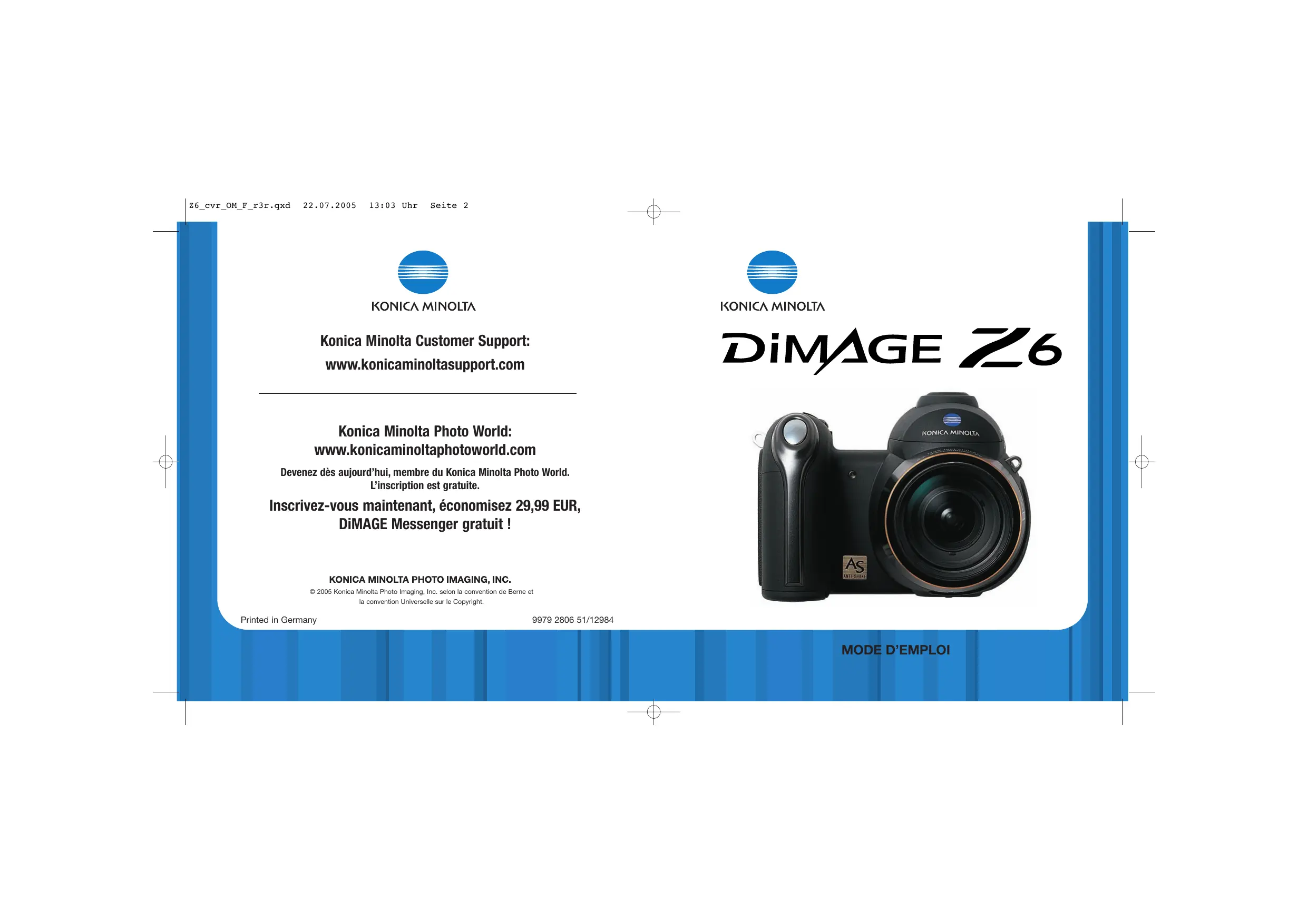 MODE D'EMPLOI DIMAGE Z6 MINOLTA