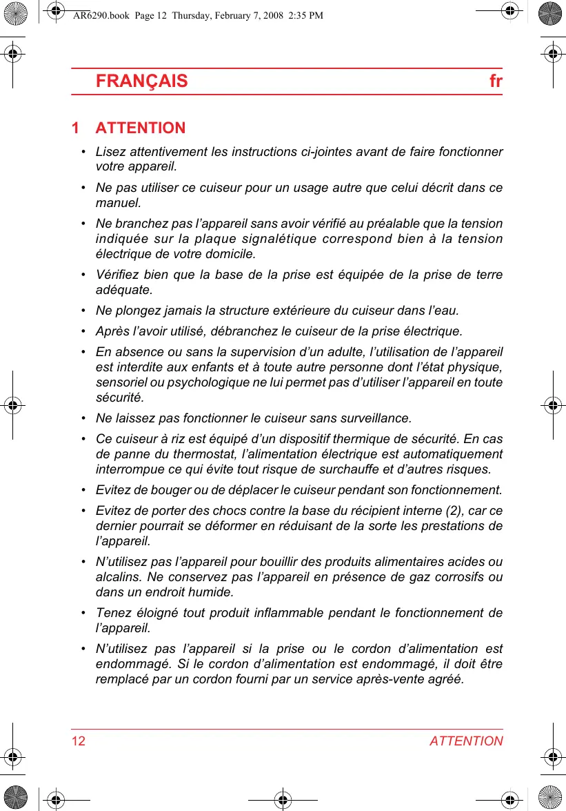 - Ne pas utiliser ce cuiseur pour un usage autre que celui décrit dans ce manuel.