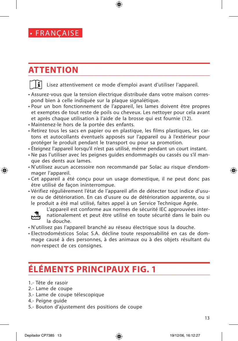 CP7385 - Rasoir électrique SOLAC - Notice d'utilisation et mode d'emploi gratuit