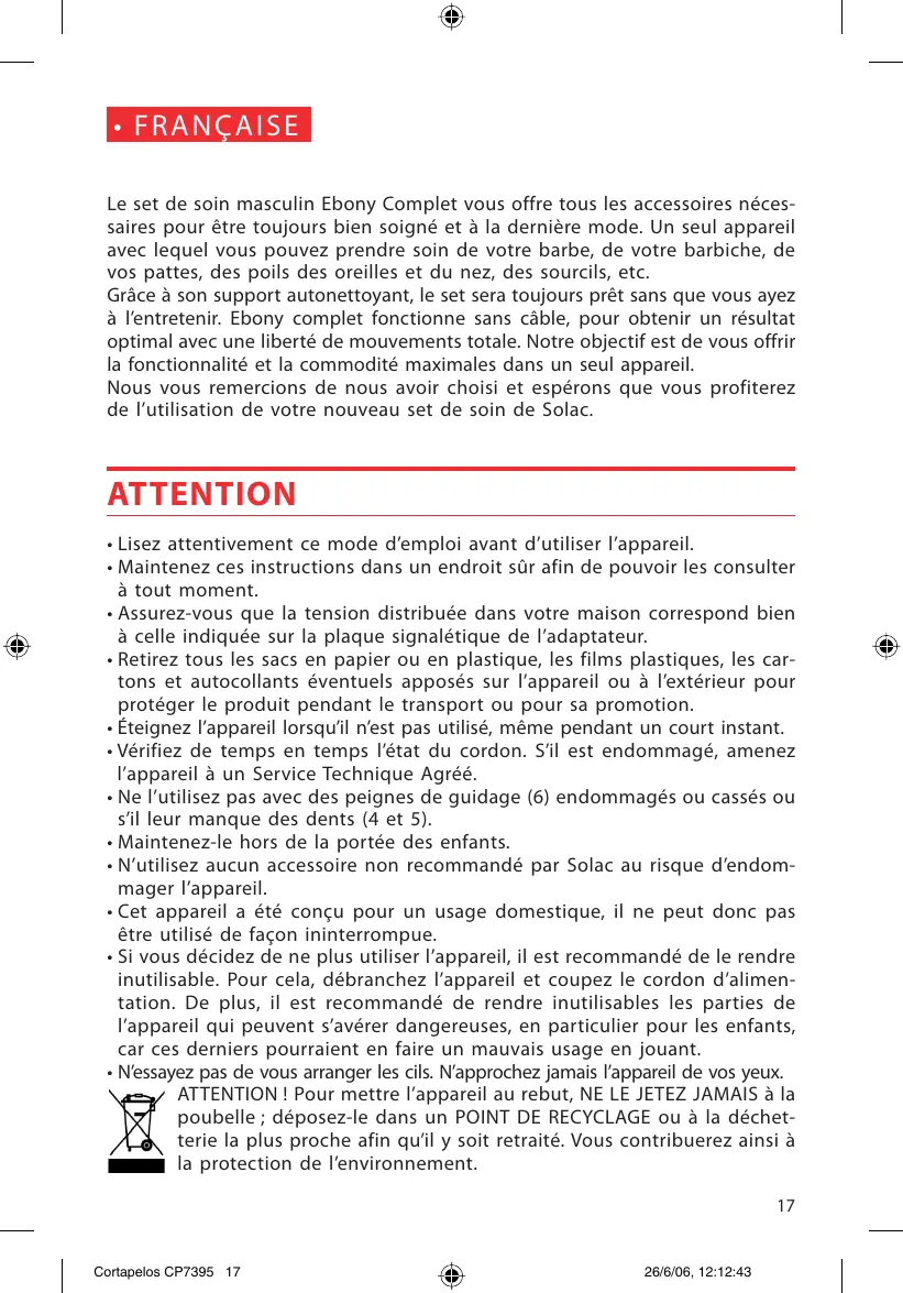 Nous vous remercions de nous avoir choisi et espérons que vous profiterez de l'utilisation de votre nouveau set de soin de Solac.