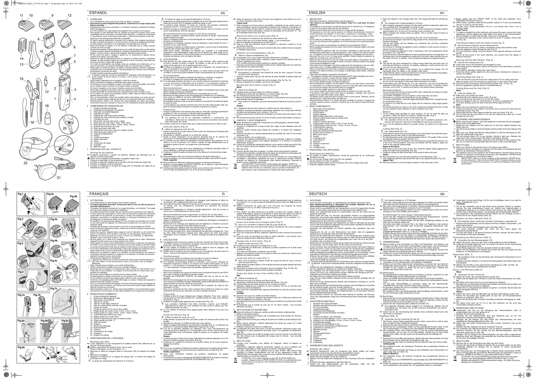 CP7396 - Tondeuse à cheveux SOLAC - Notice d'utilisation et mode d'emploi gratuit
