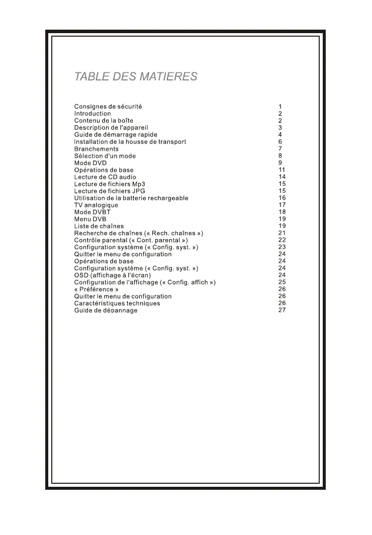 Commencze par vérifier le contenu de l'emballage de votre lecteur DVD portable :