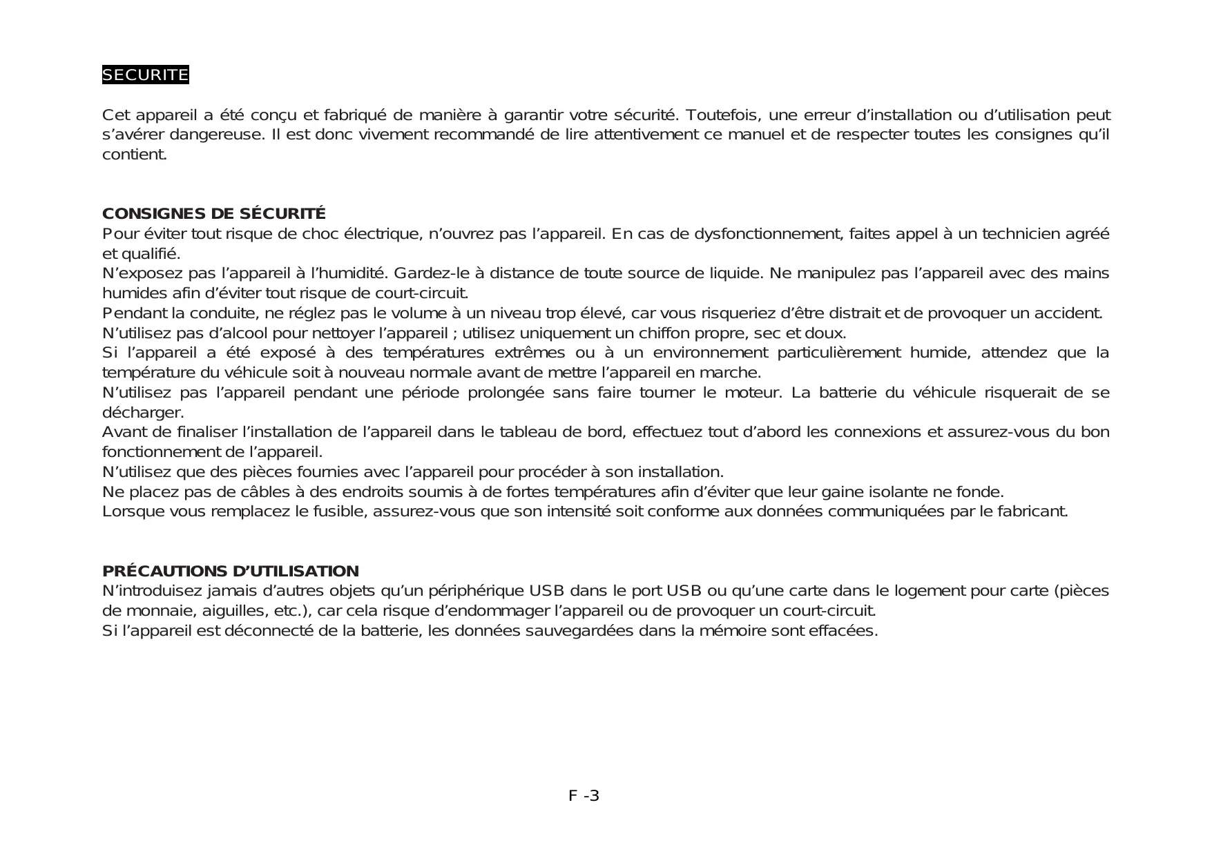 Pendant la conduite, ne reglez pas le volume à un niveau trop élevé, car vous risqueriez d'être distrait et de provoquer un accident.