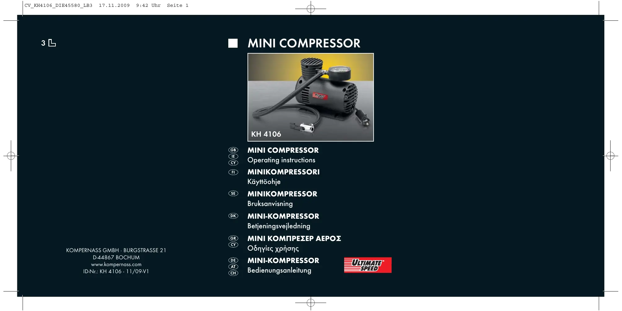 KH 4106 MINI COMPRESSOR - Compresseur ULTIMATE SPEED - Notice d'utilisation et mode d'emploi gratuit