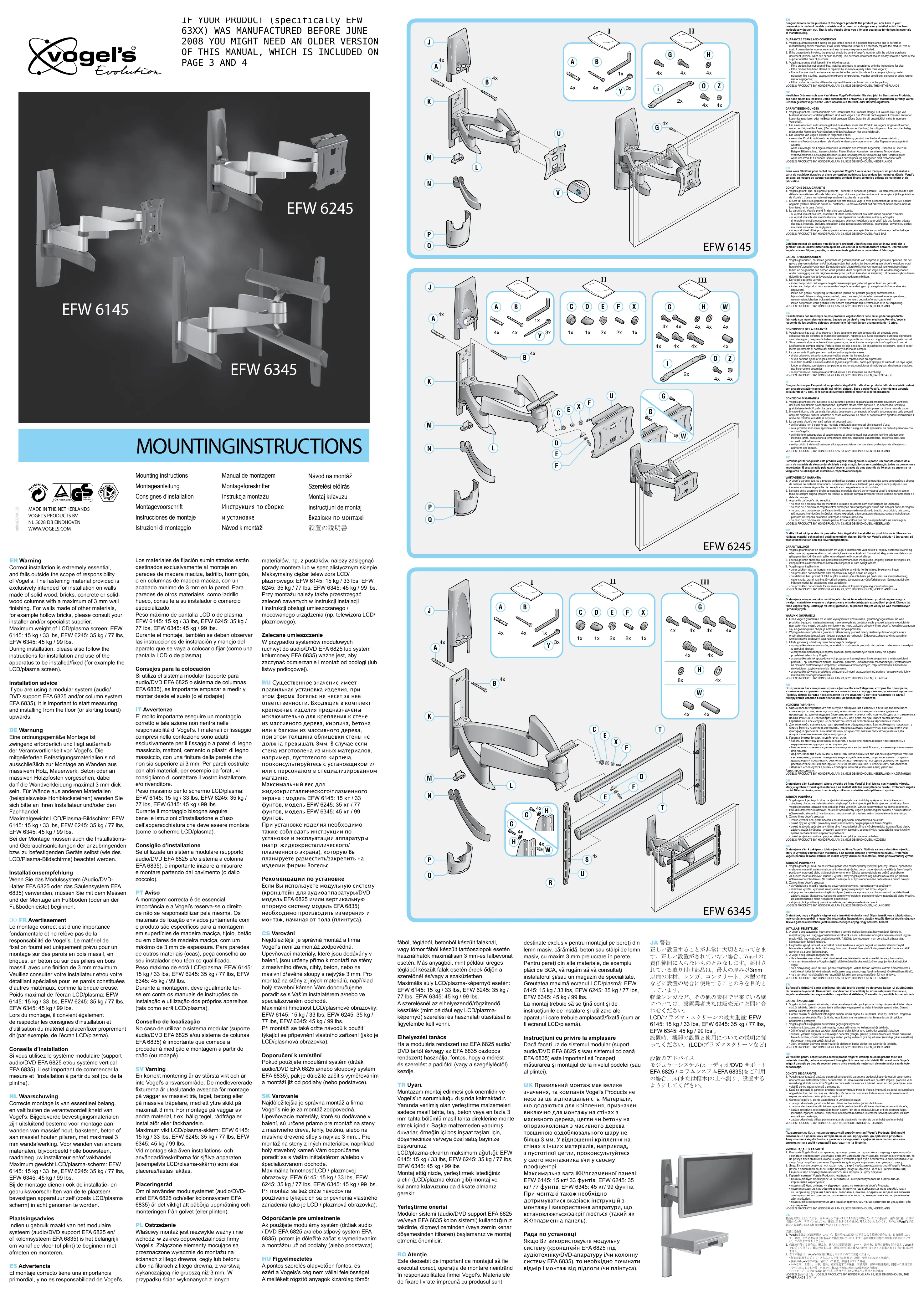 EFW 6345 - Support mural pour téléviseur VOGELS - Notice d'utilisation et mode d'emploi gratuit