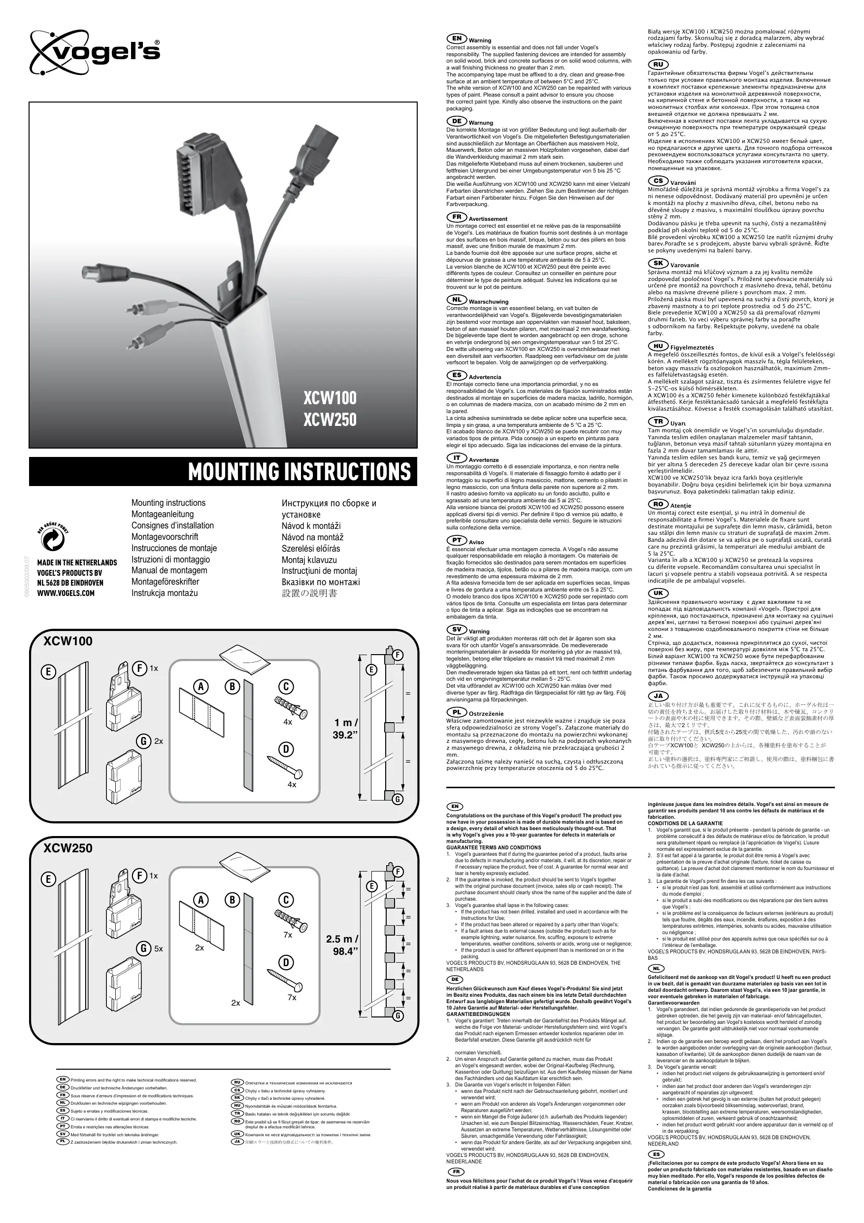Retrouvez gratuitement la notice de l'appareil XCW 100 VOGELS au format PDF.