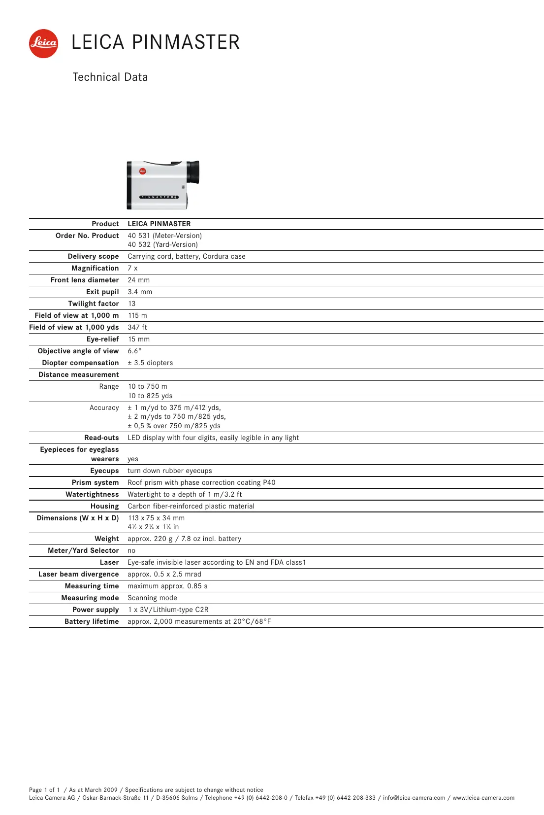 PINMASTER - Télémètre laser LEICA - Notice d'utilisation et mode d'emploi gratuit