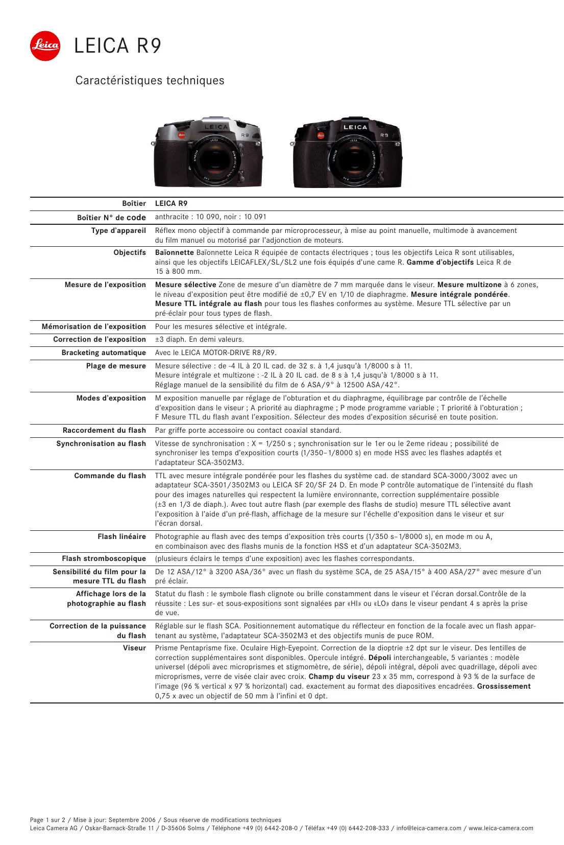 Retrouvez gratuitement la notice de l'appareil R9 LEICA au format PDF.