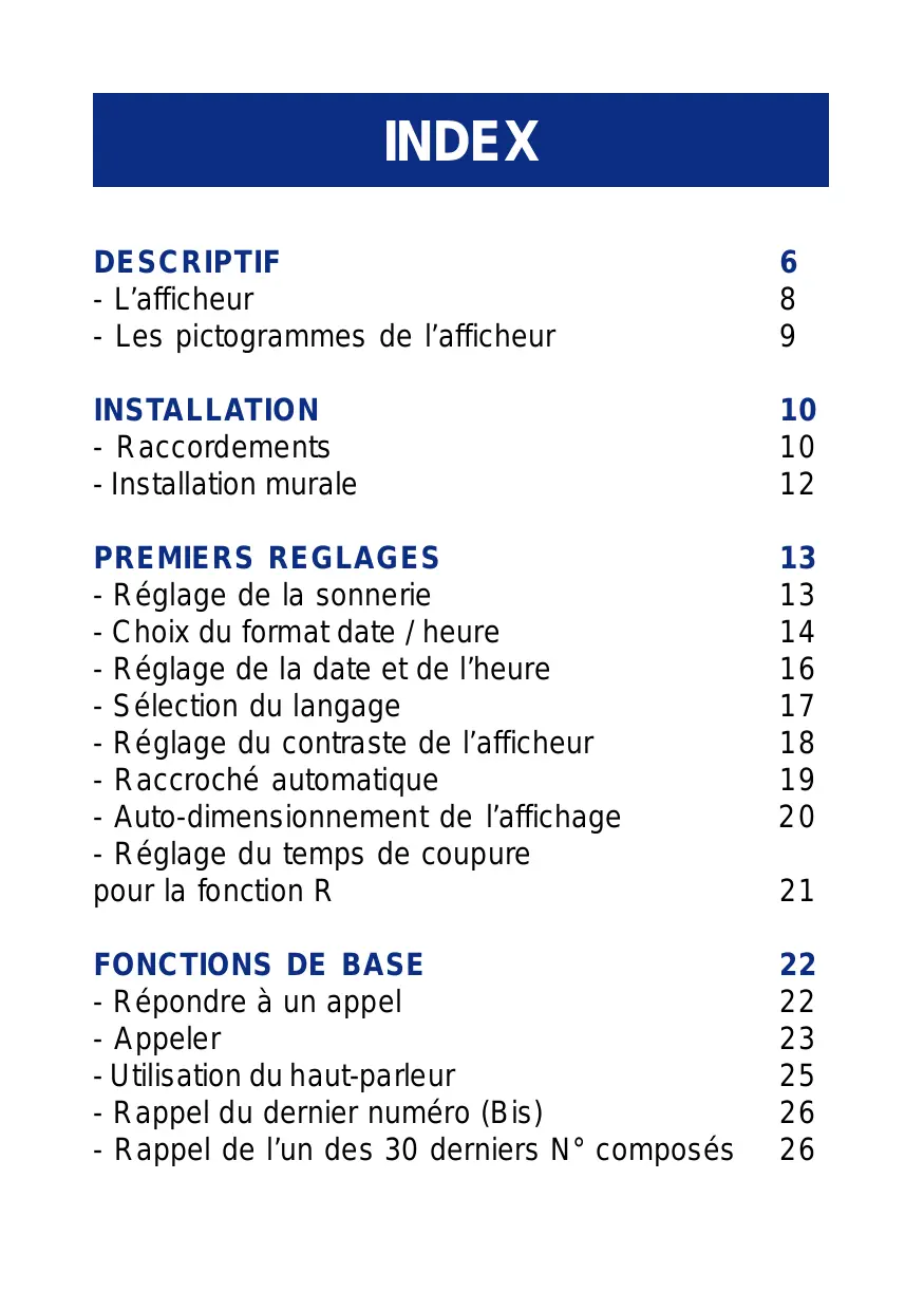 -Raccroché automatique 19 - Auto-dimensionnement de l'affichage 20