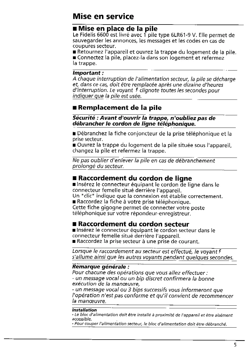 Nous vous remercions de votre choix et vous conseillons de lire attentivement cette notice pour utiliser facilement toutes les possibilités de votre Fidelis 6600.