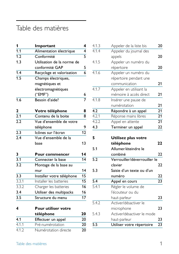 4 Pour utiliser votre téléphone 20