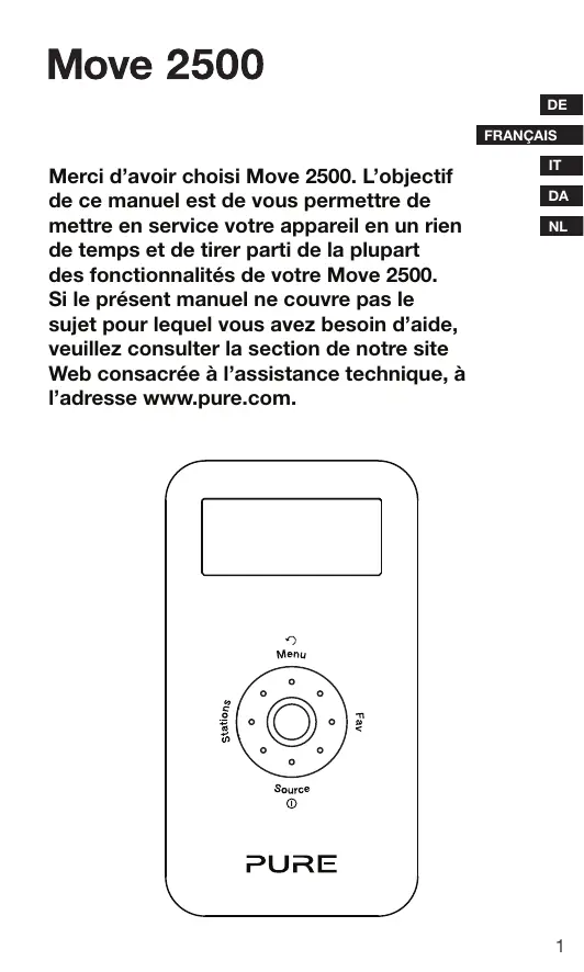Téléchargez la notice de votre au format PDF gratuitement ! Retrouvez votre notice MOVE 2500, MOVE 400D - PURE et reprennez votre appareil électronique en main. Sur cette page sont publiés tous les documents nécessaires à l'utilisation de votre appareil MOVE 2500, MOVE 400D de la marque PURE.