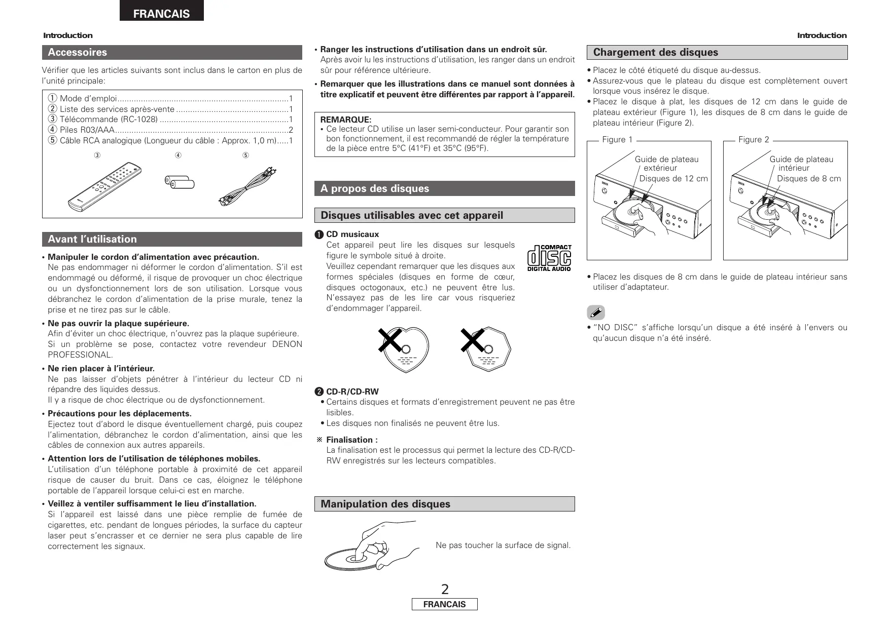 FRANCAIS FRANCAIS Introduction Précautions liées au chargement des disques