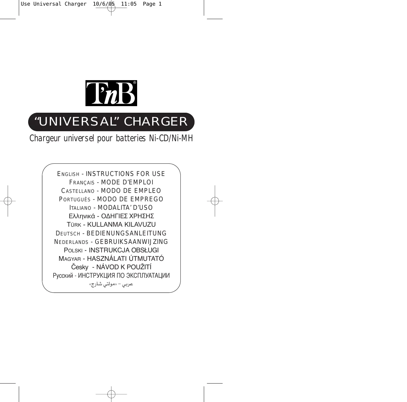 CHBA030523 - Chargeur de batterie TNB - Notice d'utilisation et mode d'emploi gratuit