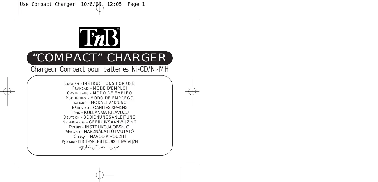 CHBA035436 - Chargeur de batterie TNB - Notice d'utilisation et mode d'emploi gratuit
