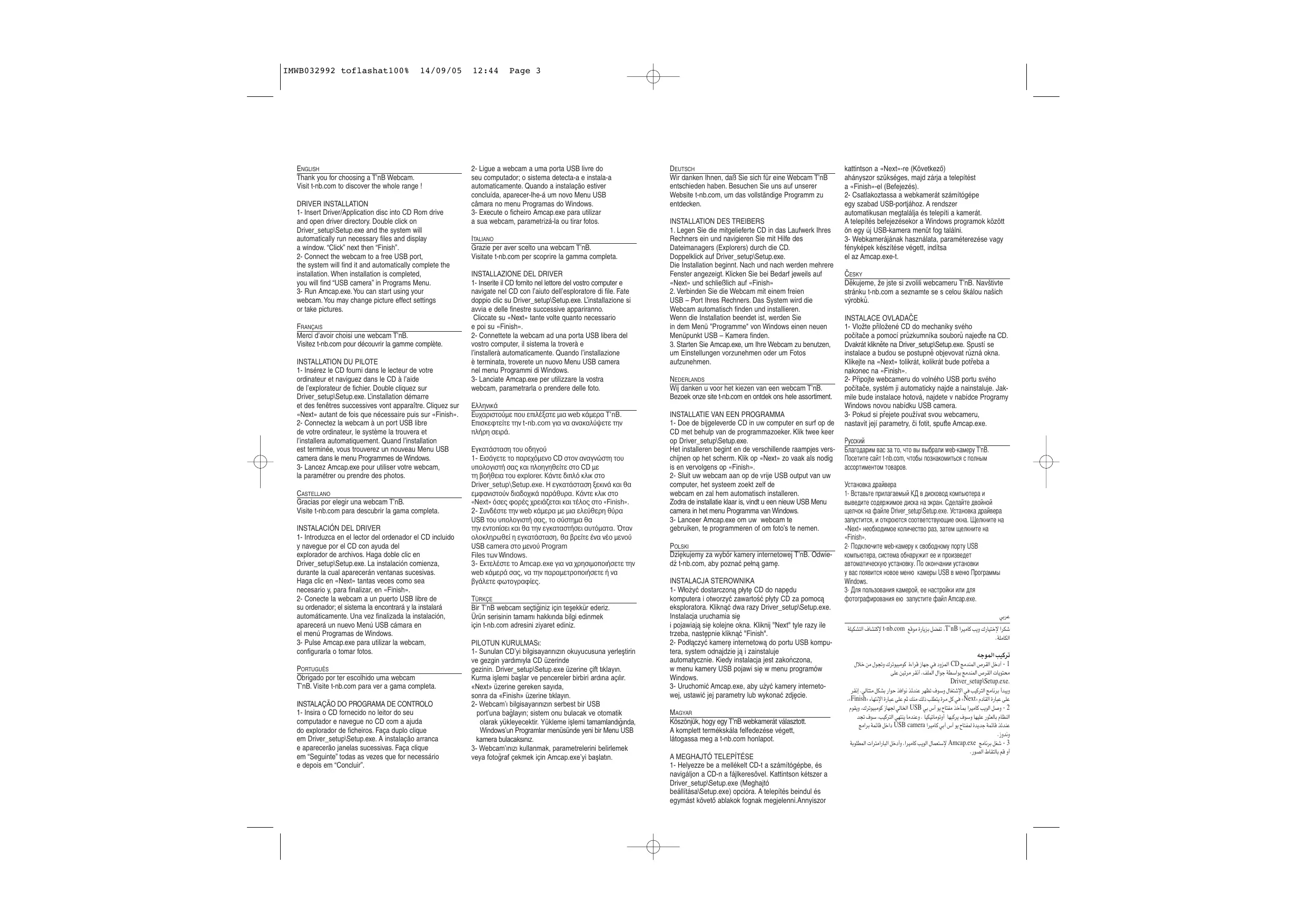 la paramétrer ou prendre des photos. CASTELLANO Gracias por elegir una webcam T’nB. Visite t-nb.com para descubrir la gama completa.