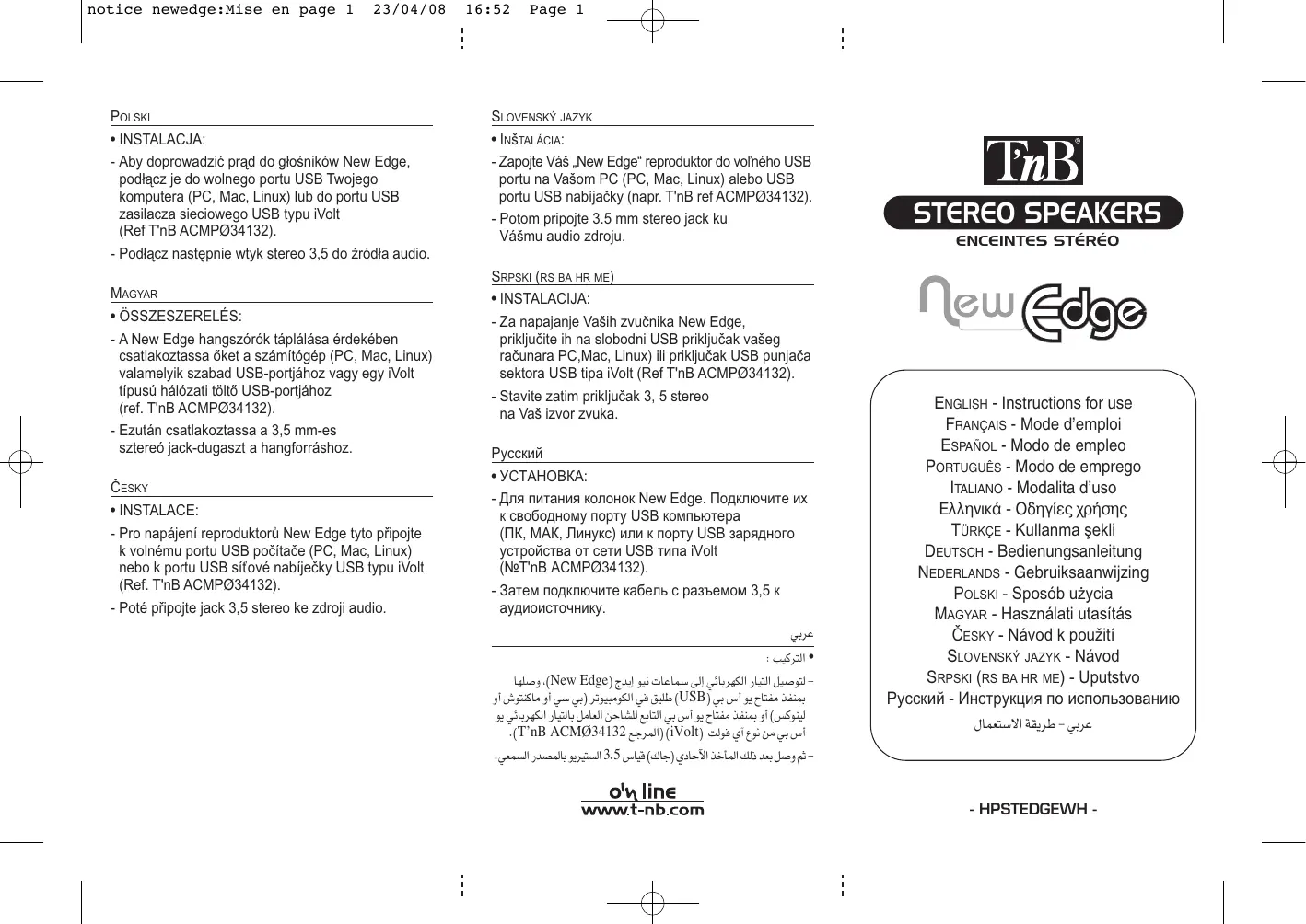 NEW EDGE - Enceintes stéréo TNB - Notice d'utilisation et mode d'emploi gratuit