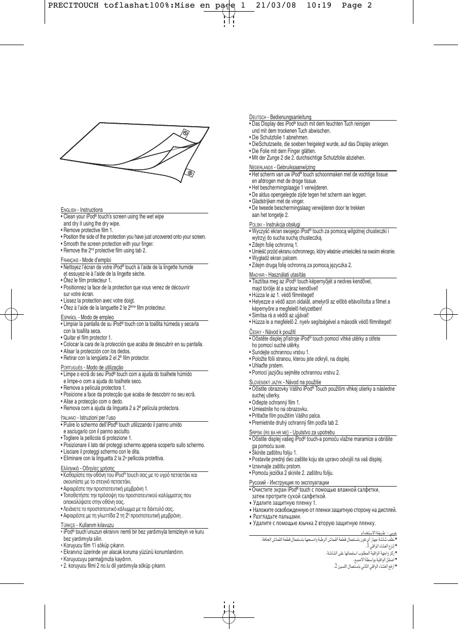 - Remove the 2nd protective film using tab 2. FRANÇAIS - Mode d’emploi