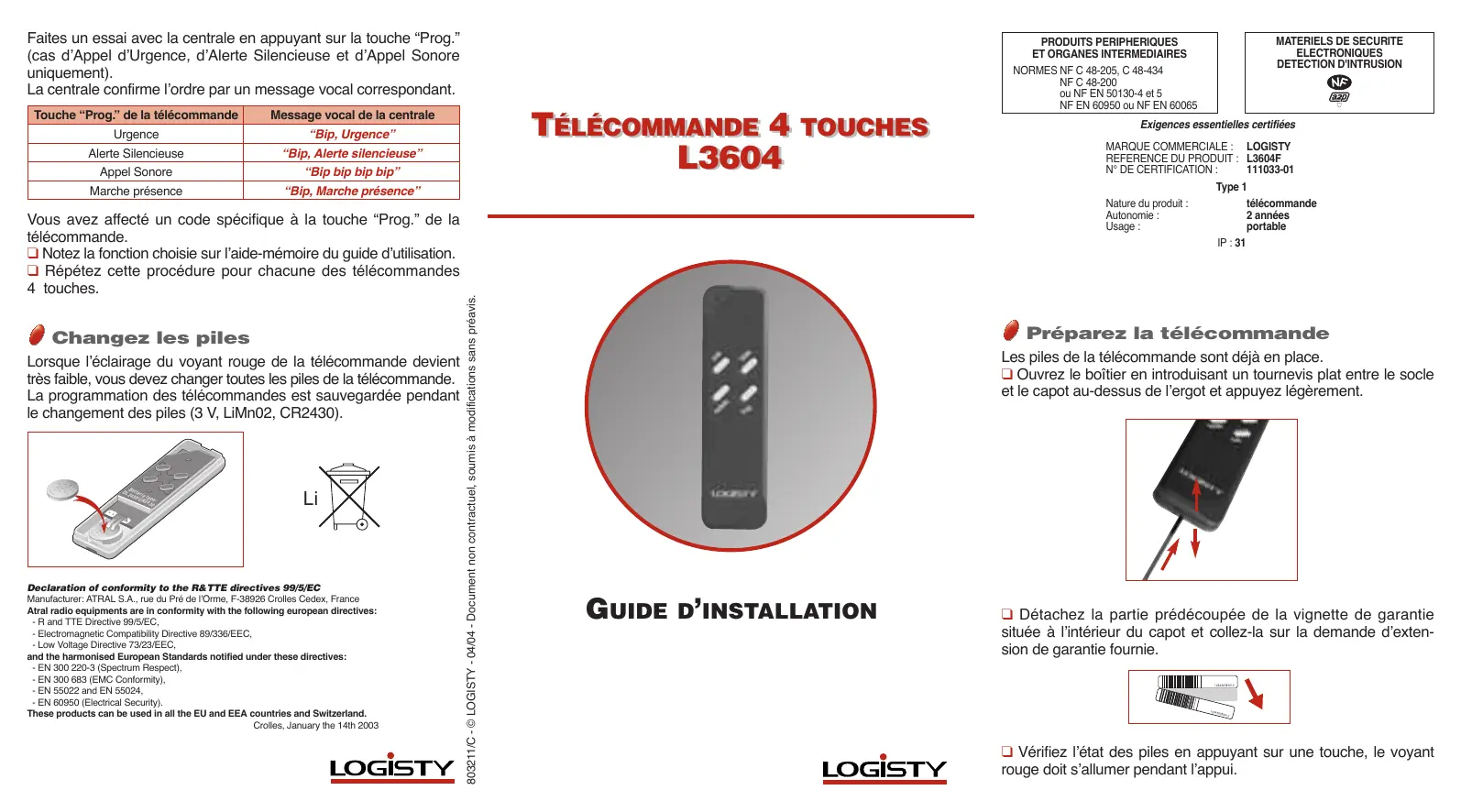 L3604F - Télécommande LOGISTY - Notice d'utilisation et mode d'emploi gratuit