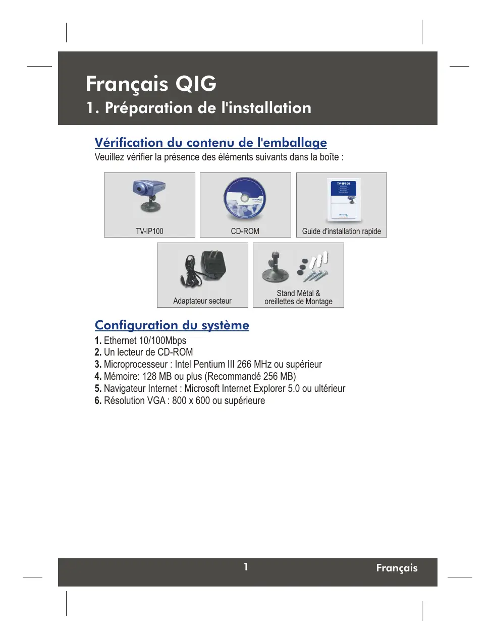 MODE D'EMPLOI TV-IP100 TRENDNET