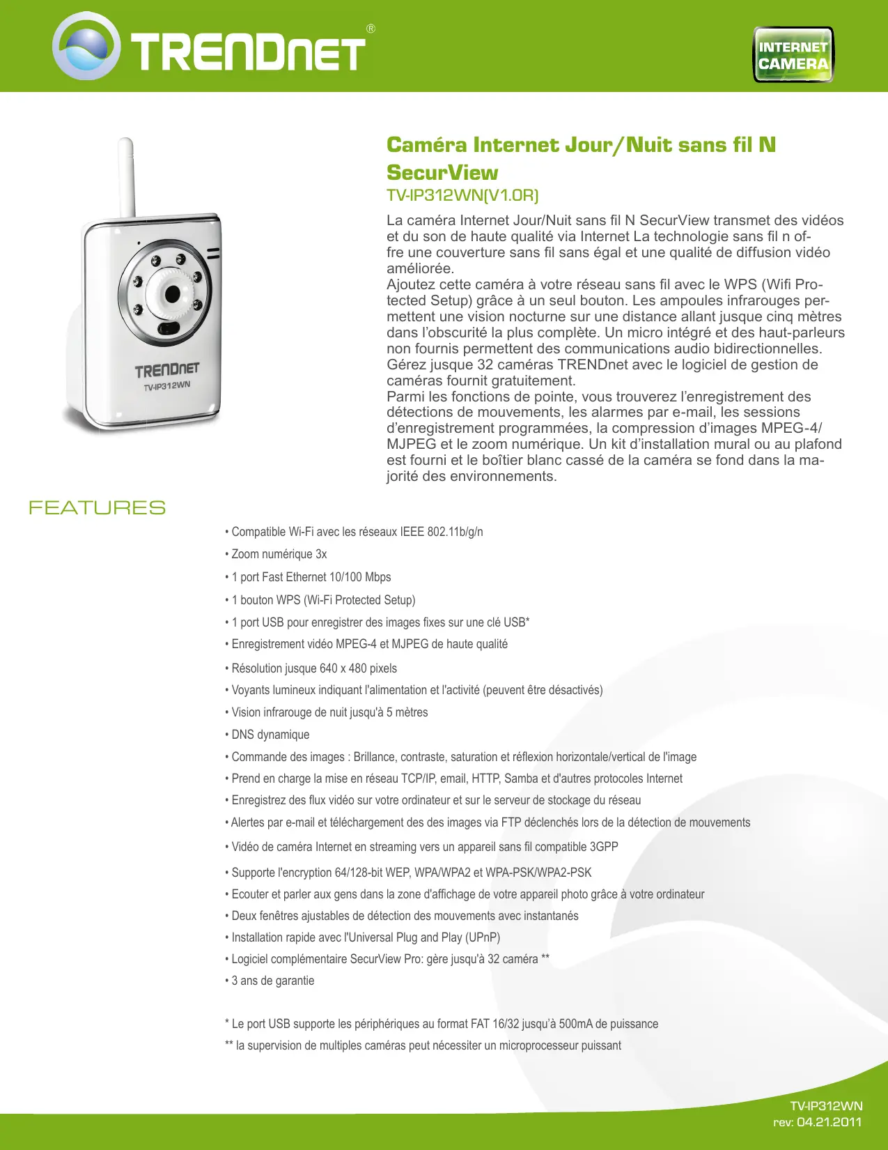 TV-IP312WN - Caméra de surveillance TRENDNET - Notice d'utilisation et mode d'emploi gratuit