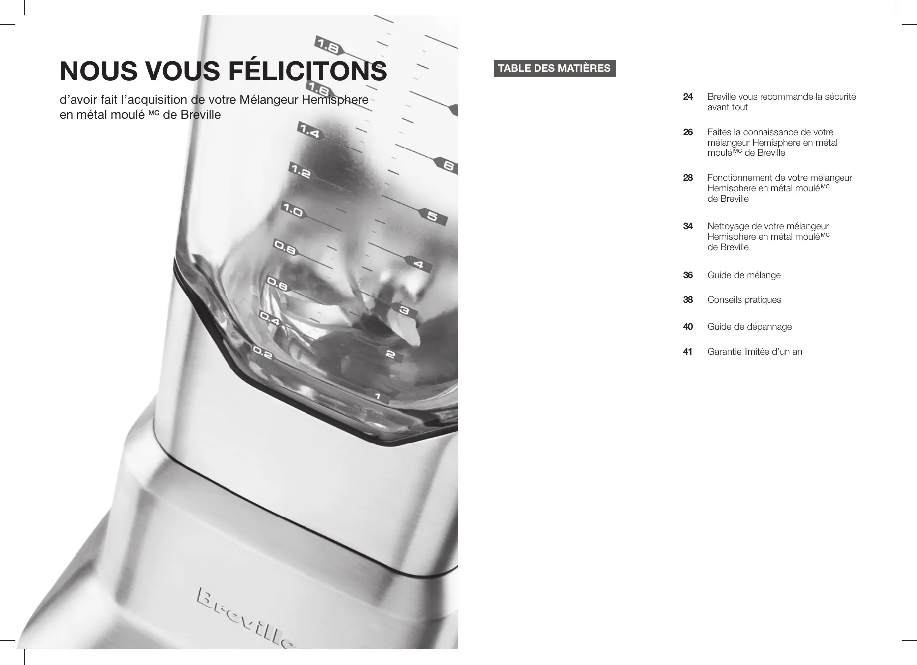 d’avoir fait l’acquisition de votre Mélangeur Hemisphere en métal moulé MC de Breville