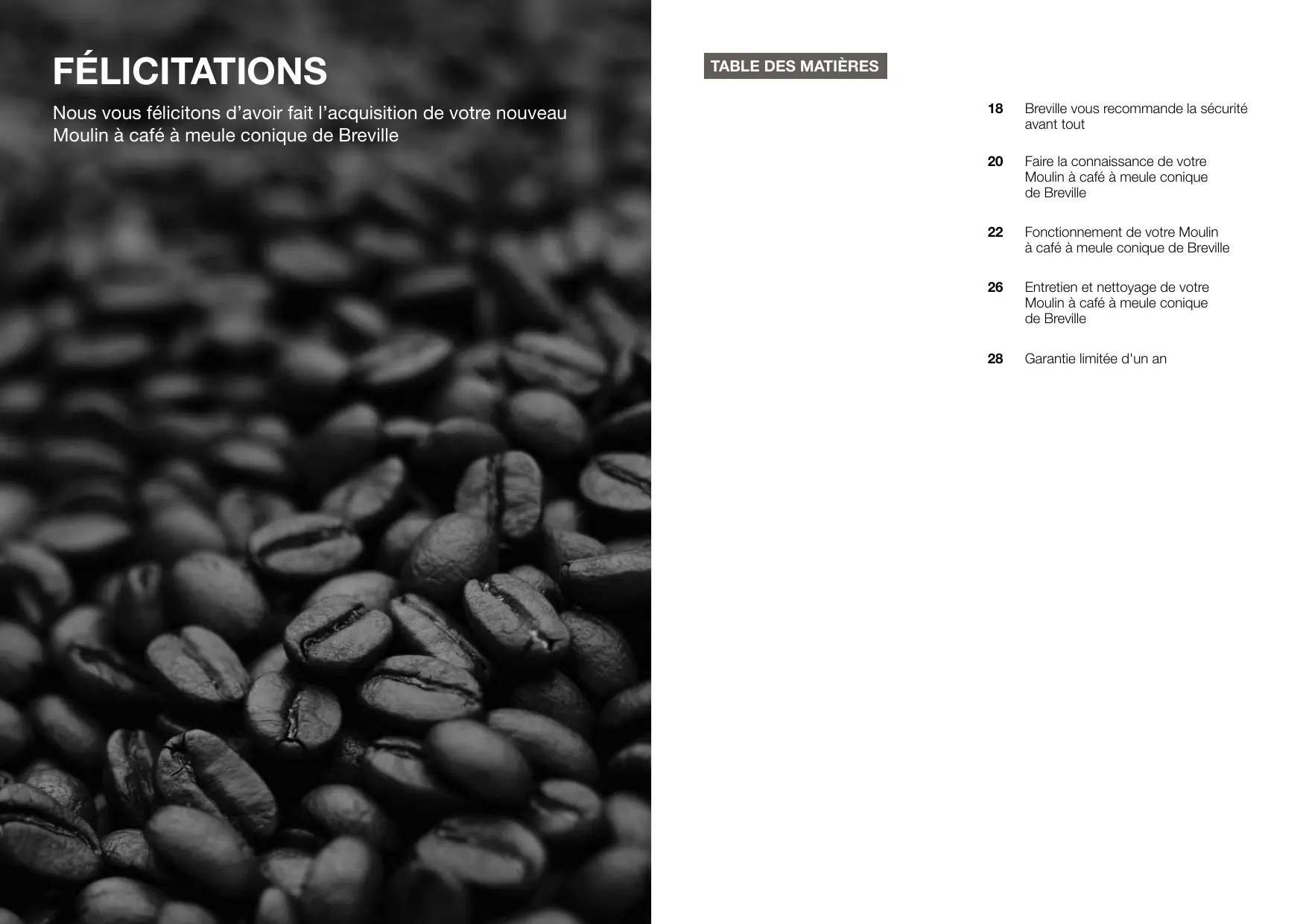 *HWI Breville® products are distributed in Canada by Anglo Canadian Housewares, L.P. and in USA by Metro/Thebe Inc. FÉLICITATIONS Nous vous félicitons d’avoir fait l’acquisition de votre nouveau Moulin à café à meule conique de Breville