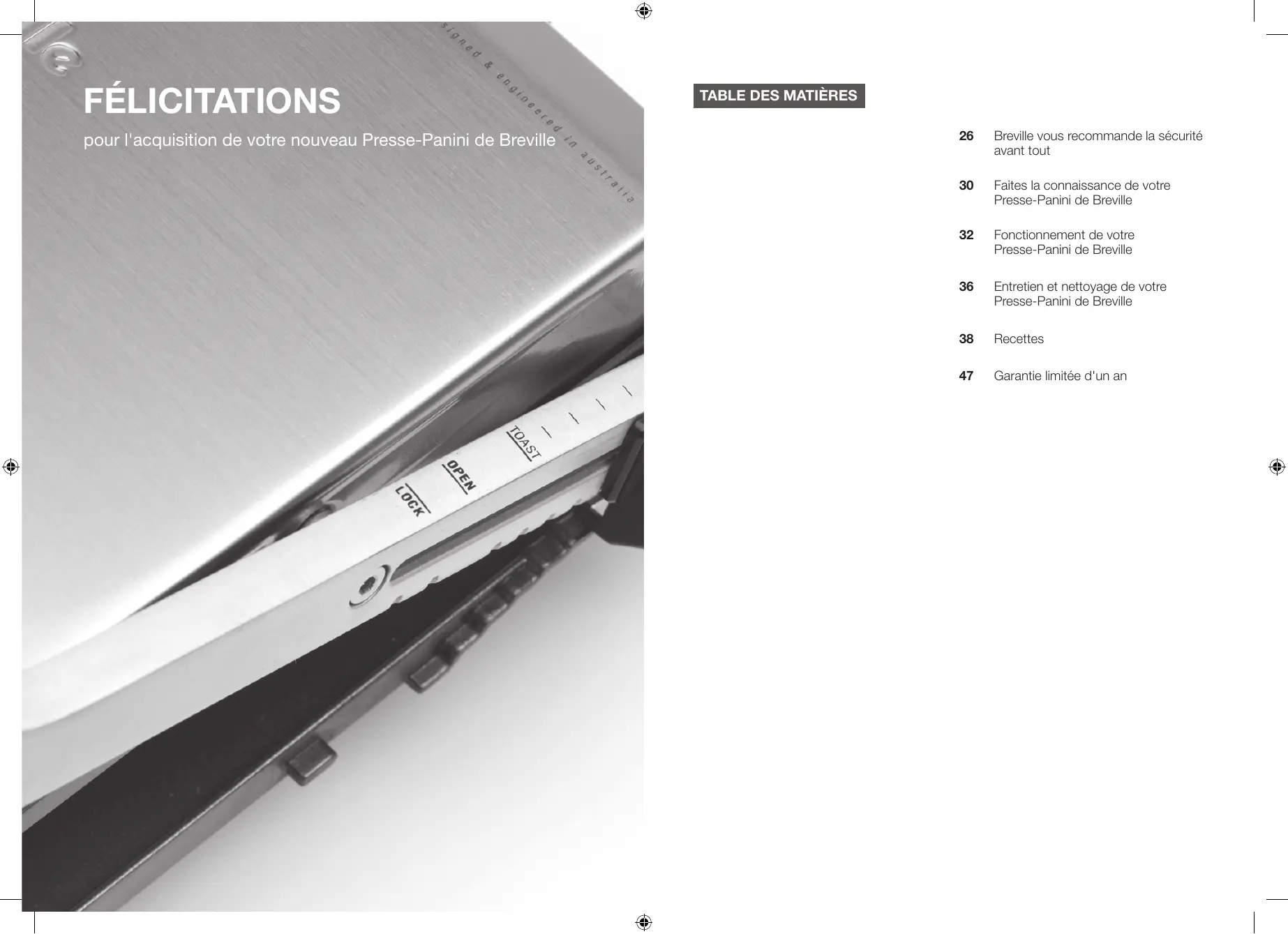 FÉLICITATIONS pour l'acquisition de votre nouveau Presse-Panini de Breville