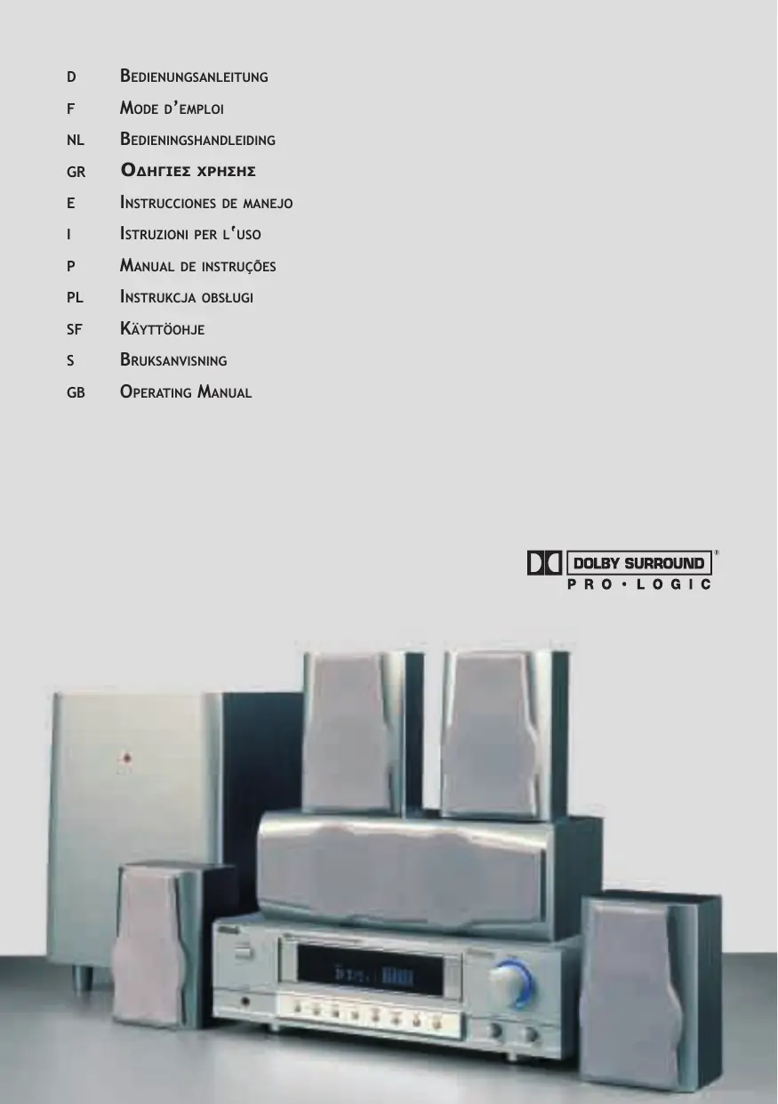 commande ou de l’amplificateur. Le niveau du volume sonore est affiché dans l'affichage de L'amplificateur. Réglez les aiguës et les graves au moyen du régulateur TREBLE ou BASS de L’amplificateur. Réglez la balance gauche et droite en appuyant sur les touches L+/R+ de La télécommande si cela vous semble être nécessaire. Pour remettre Les réglages personnels aux valeurs stan- dard préréglées, appuyez sur la touche BAL de la télécommande. L'affichage LED indique 00 lorsque la balance est réglée exactement au milieu. . Appuyez sur la touche CH SET de la télécommande pour sélectionner Le haut-parleur dont vous désirez régler Le volume sonore. Ajustez ensuite Le volume sonore au moyen des touches CH VOL+/—. En mode Dolby ProLogic et Center (CEN.MODE), vous pouvez uniquement régler le haut- parleur central et Les haut-parleurs avant ou les haut-parleurs d'effet. . Adaptez Le volume sonore du subwoofer au moyen de l’ajusteur de volume sonore situé au dos de l'appareil. . Suivant vos conditions de place individuelles, Le son surround peut être amélioré à l'aide du commutateur PHASE 0° /180°. Cherchez Le réglage assurant la meilleure reproduction sur round au lieu d'implantation de votre système surround en commutant entre 0° et 180. La touche DOLBY PROLOGIC vous permet de passer entre Les modes Dolby ProLogic, Dolby 3 Stereo et Bypass. La touche CEN.MODE vous permet de choisir parmi les effets Dolby ProLo gic NORMAL, PHANTOM et WIDE.En mode Dolby 3 Stereo, seuls Les effets WIDE et NORMAL peuvent être réglés. Lorsque le mode Dolby ProLogic est désactivé, ces réglages ne peuvent pas être réalisés. . La touche DSP permet de choisir parmi six courbes d’égalisateur différentes (Rock, Movie, Music, Hall, Disco et Pops). Chaque courbe d’égalisateur souligne de façon caractéristique La gamme des fréquences aiguës, moyennes et graves. . Pour désactiver tous Les effets de sonorité et surround, il suffit d'appuyer sur La touche BYPASS. Pour obtenir une sonorité surround optimale en mode Dolby ProLogic, les haut-parleurs sur round devraient reproduire les sons avec un léger retard. Le retard optimal dépend de vos conditions locales individuelles et peut être réglé en actionnant Les touches SUR DELAY +/—. Cette fonction permet de régler Le retard en pas d’1 ms. En appuyant sur la touche TEST, vous pouvez vérifier que tous Les haut-parleurs sont raccordés correctement. Dans ce cas, vous entendrez un ronronnement. Le canal de test est indiqué sur L'affichage. Appuyez sur MUTE (muet) lorsque vous désirez supprimer Le son. L'affichage Standby/Mute passe au rouge. Appuyez une deuxième fois sur la touche pour retourner au mode normal.