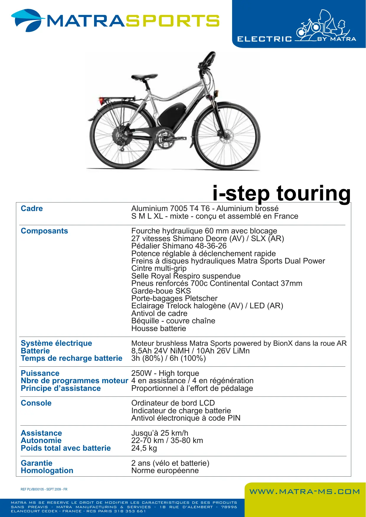 I-STEP TOURING - Vélo électrique MATRA - Notice d'utilisation et mode d'emploi gratuit