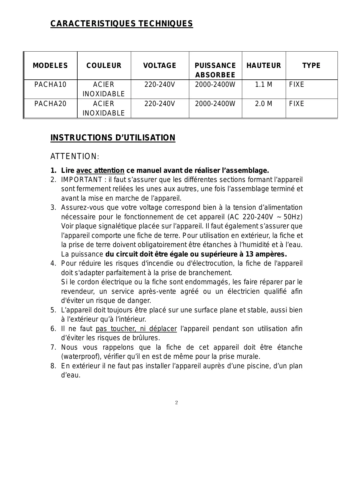 Retrouvez gratuitement la notice de l'appareil PACHA 20 PUR LINE au format PDF.