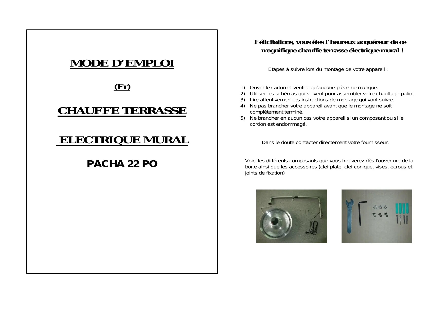 (Fr) CHAUFFE TERRASSE ELECTRIQUE MURAL PACHA 22 PO Etapes à suivre lors du montage de votre appareil :
