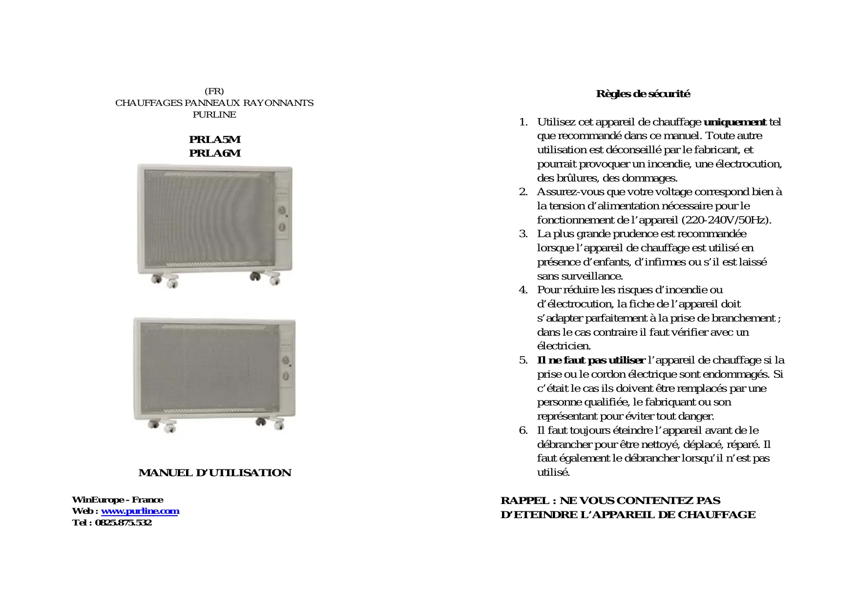 WinEurope - France Web : www.purline.com Tel : 0825.875.532 WinEurope - France Web : www.purline.com Tel : 0825.875.532 WinEurope - France Web : www.purline.com Tel : 0825.875.532 Veiligheidsvoorschriften