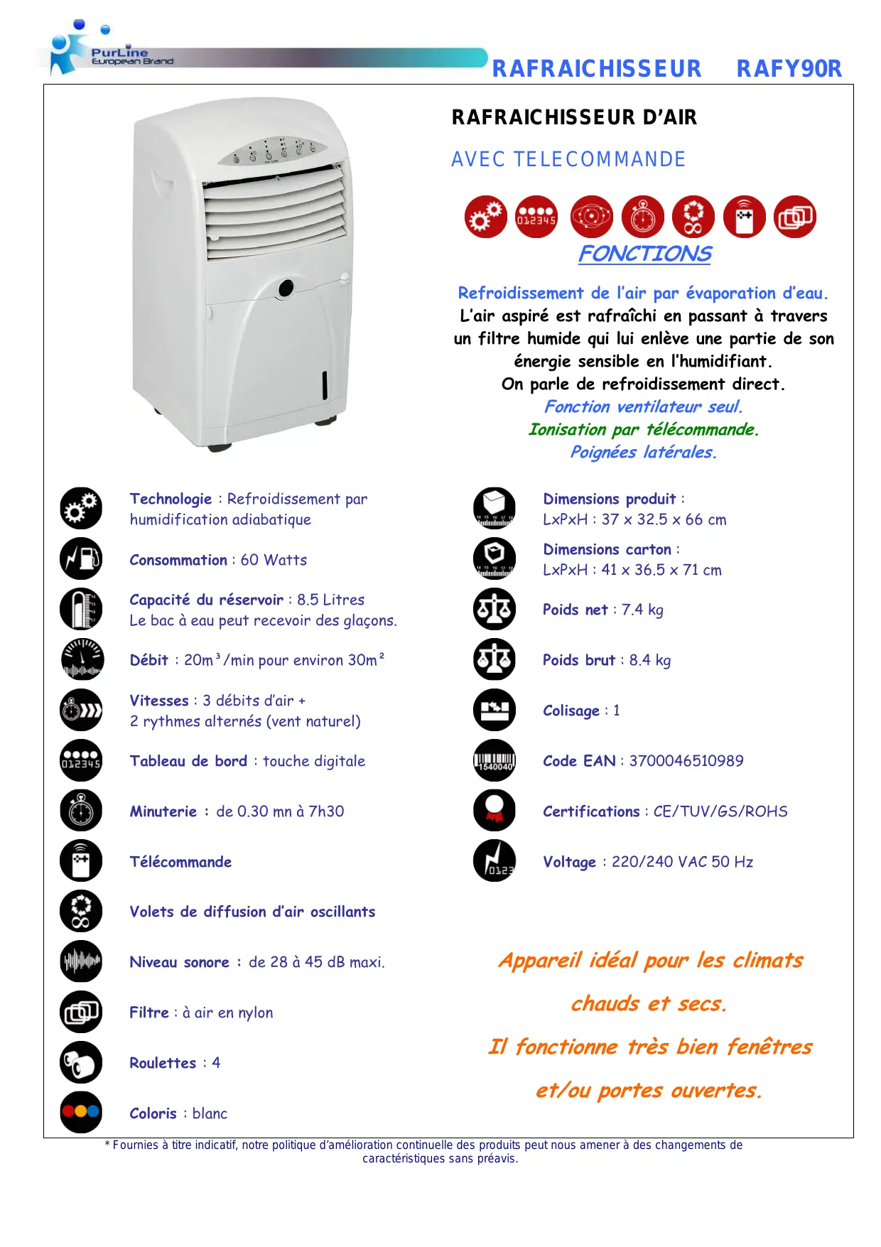Appareil idéal pour les climats chauds et secs.