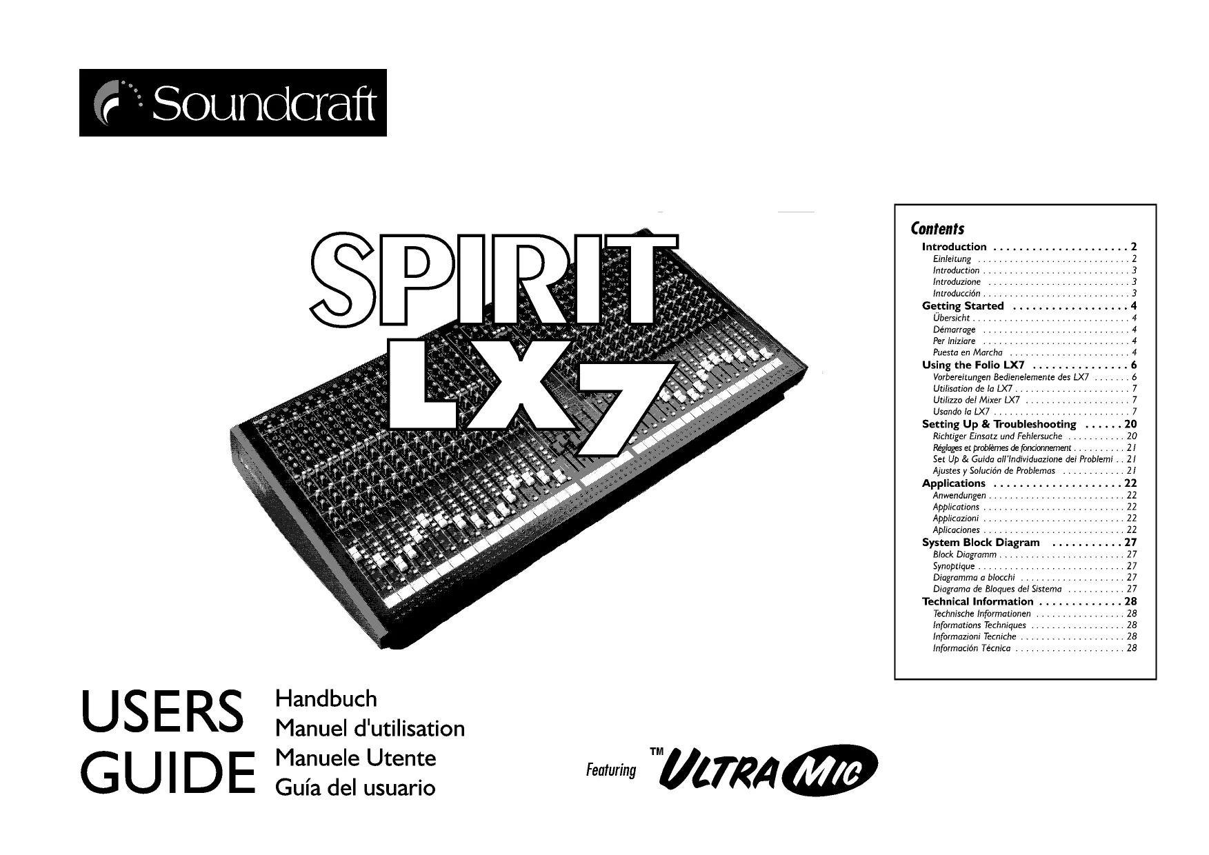 Retrouvez gratuitement la notice de l'appareil SPIRIT LX7 SOUNDCRAFT au format PDF.