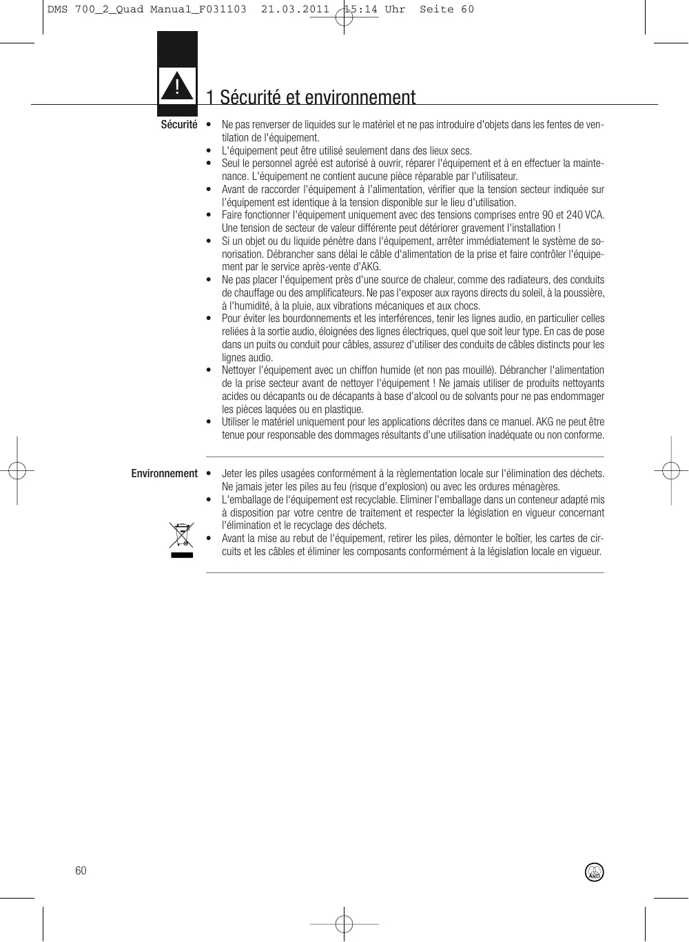 MODE D'EMPLOI DSR 700 AKG