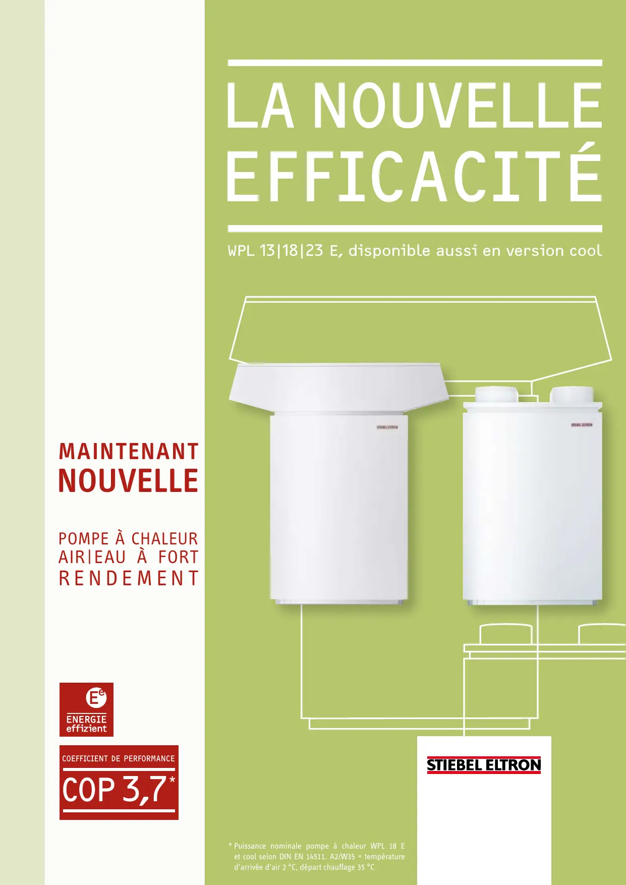 La nouvelle efficacité WPL 13|18|23 E, disponible aussi en version cool maintenant NOUVELLE pompe à chaleur air | eau à fort rendement Coefficient de performance COP 3,7